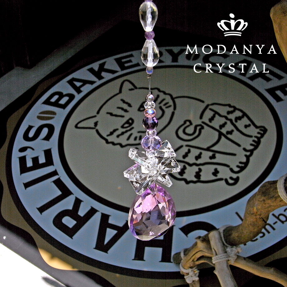 クリスタルガラスが太陽の光を受けて輝き、部屋のなかに美しい虹色の光を映し出します。