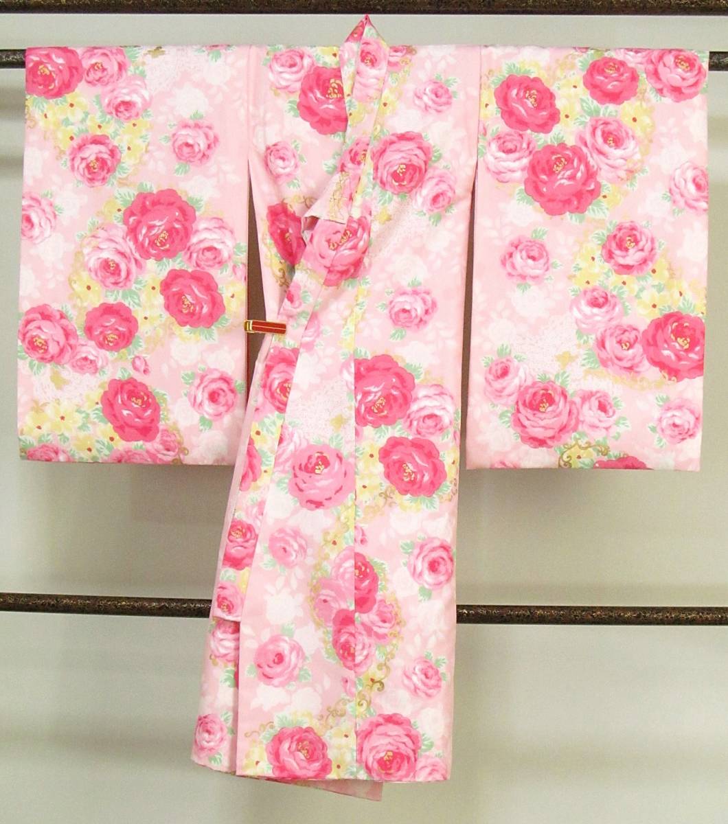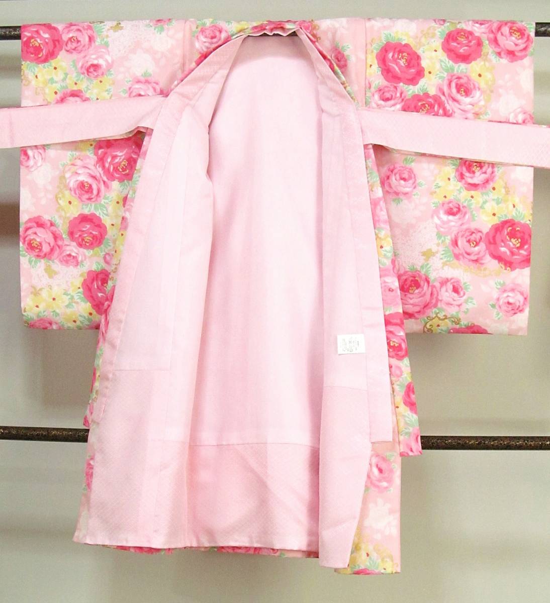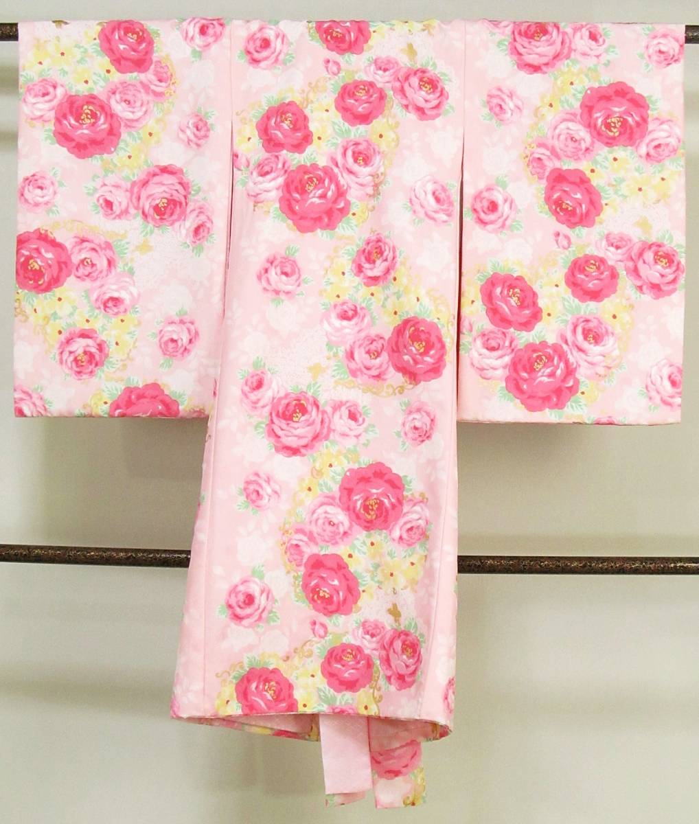 し45 化繊 女児 祝着 襦袢付き ピンク色系地バラ柄 SEIKO MATSUDA 身丈95cm ◎◎セール◎◎