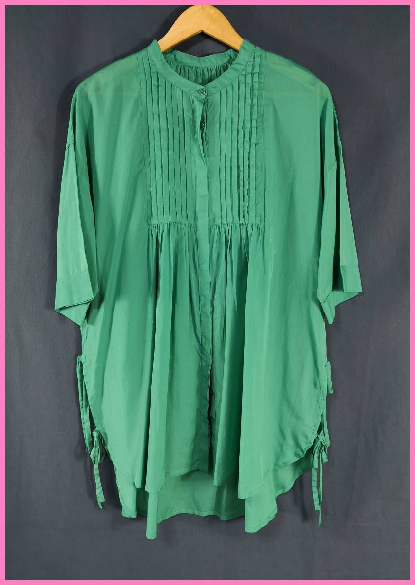 カジュアル着にもちょっとしたお出かけ着にも使えるアイテムですよ!(^^)/ ☆ チュニック【 サイズ 】M~Lサイズ 記載サイズ 身長 … 154~162cm バスト … 79~94cm 着丈 … 86cm (素人採寸) 身幅 … 62cm (素人採寸) すそ幅 … 77cm (素人採寸) 前身ごろが10cm短い。 スリット38cm有り。紐付き。 フロント隠しボタン。 【 素材 】 レーヨン … 59% 綿 … 41% 透け感有り。 【 カラー 】 緑色 … 1枚 (新品) 希望店頭小売価格 1枚 6490円税込み 神経質な方は、ご入札をお控えください。 ノークレーム、ノーリターンです。 ※お洗濯の際に色落ち、色移り等の可能性もありますので 他の物と分けてお洗濯されることおすすめします。 ※サンプル品には、品質表示等のタグは付いておりません。 商品のお取り扱いとうにはご注意ください。 ※送料込みの金額設定で出品している商品に関しましては、 同梱、送料の割引は致しません。 個別発送とさせていただきます。 (おまとめ取引はできません。) ※お手数をお掛けしますが、商品のサイズに関しましてご自身の服のサイズと照らし合わせてご確認ください! ※商品のプリントや刺繍位置が商品の写真の位置と異なる場合がありますのでご了承ください。 ※商品の色の表現に関しまして、文字でお伝えすることが難しい色がございます。できる限りわかりやすく表現させていただきますがご想像の色と違う場合もございます。 ※撮影状況・PC環境により実際の商品と色合いが異なってみえる場合がありますので、ご了承の上ご入札お願いします。 ※セット内容の変更はできません。 |