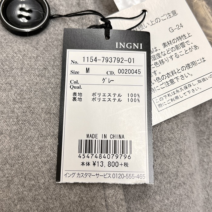商品タイトル | 【新品】INGNI イング M レディース 女性 チェスターコート ロングコート 2つボタン留め 裏地付き 無地 長袖 ポリ100% ヘザーグレー |