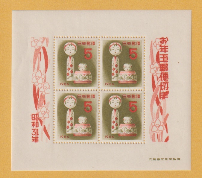 年賀切手 《昭和31年用》 こけし (S/S) 小型シート