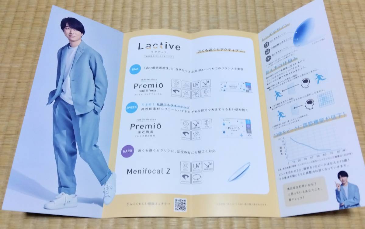 メニコンのコンタクトレンズ ラクティブのリーフレットです。