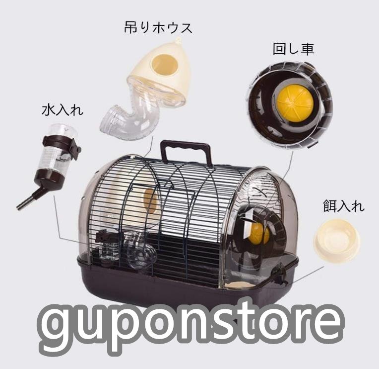 人気推薦★ ハムスターケージ ハムスターハウス 小動物ケージ 透明 通気 飼育ケージ 幅広い 持ち手付き お出かけ 付属品付き