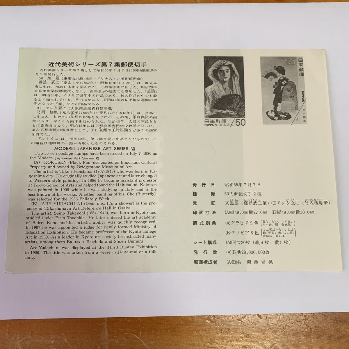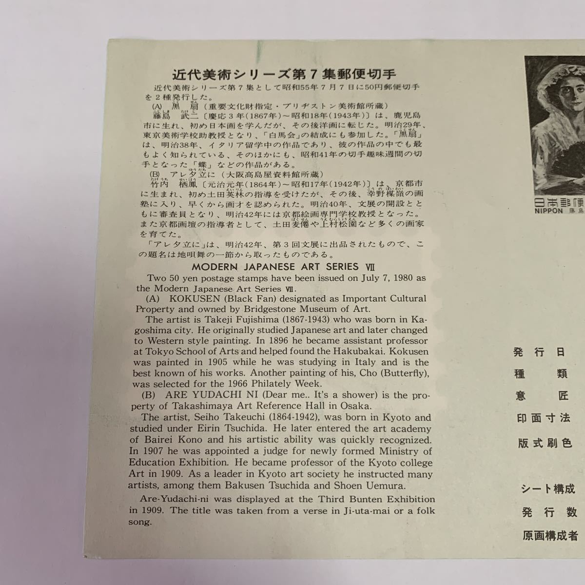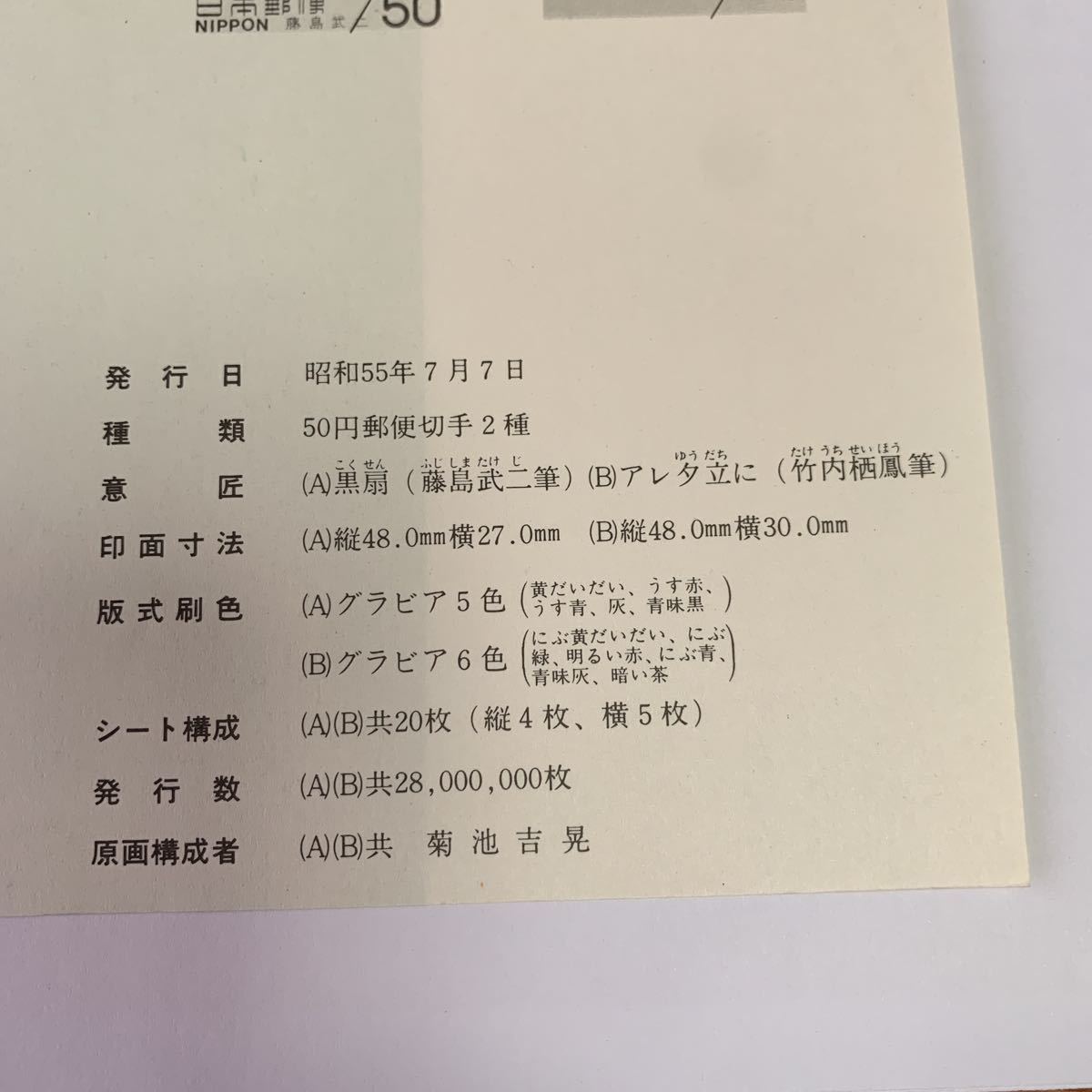 リーフレット 切手なし 1980年 郵政省 近代美術シリーズ第7集郵便切手 昭和55年7月7日 黒扇 アレ夕立に レア 希少 非売品 美品 送料無料の出品です。 サイズ横21.1センチ縦15センチ 納戸の整理(断捨離)で今後使用予定が ない為出品しました。 衣装ケースに入れて保管してました。