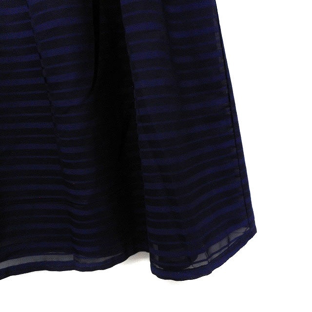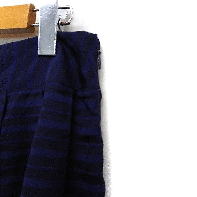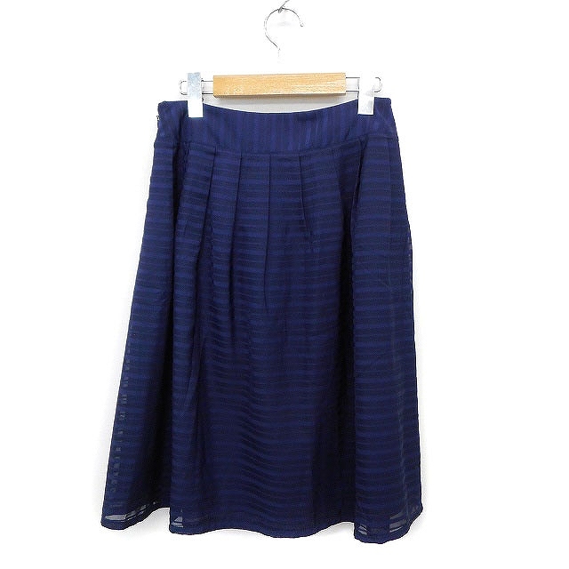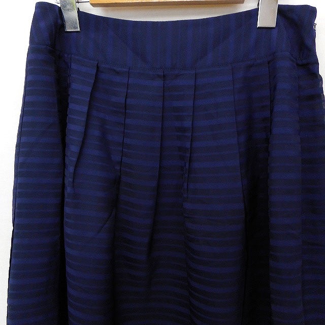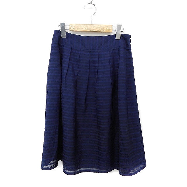 エプローヴ Eprouve ボーダー柄 タック フレアスカート ひざ下丈 M ネイビー 紺 /FT43 レディース
