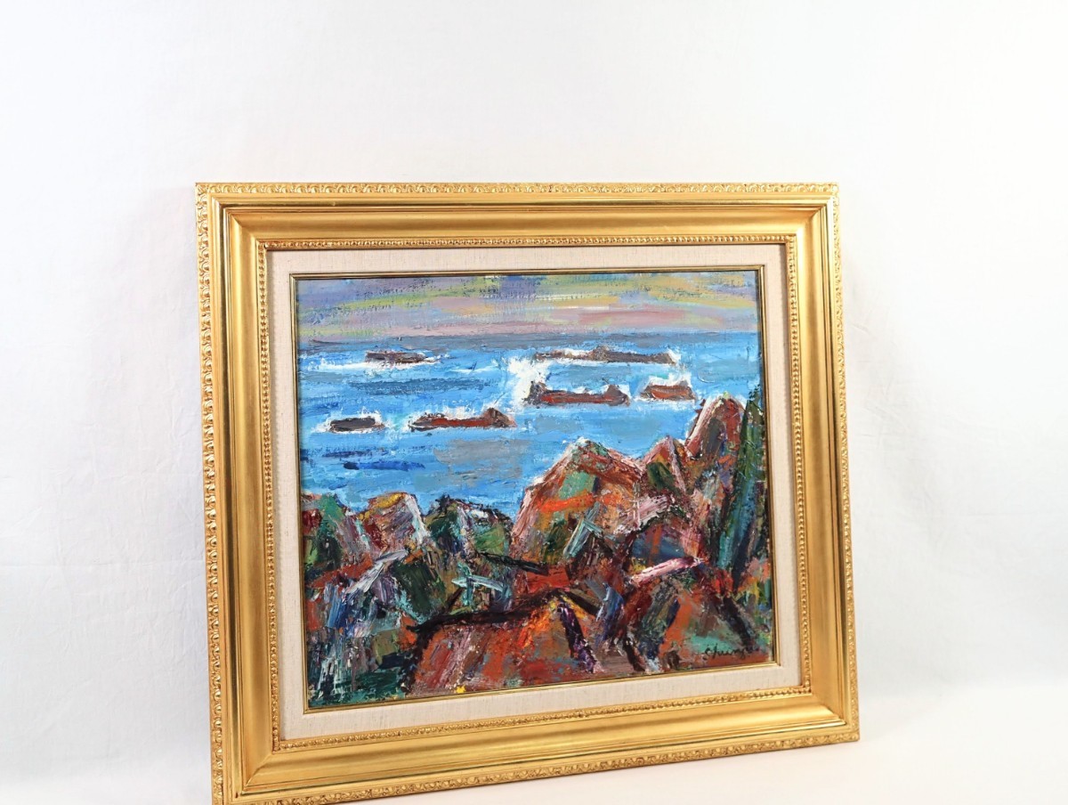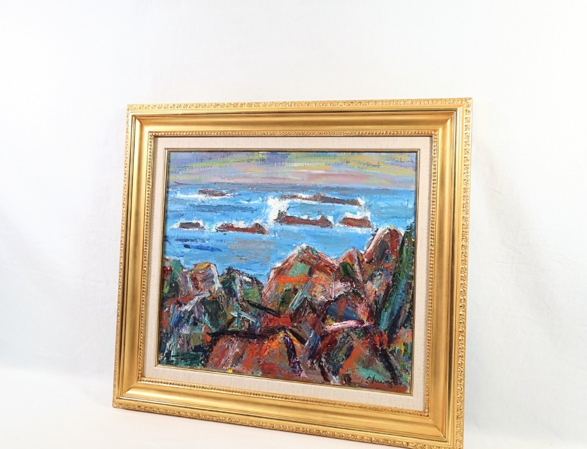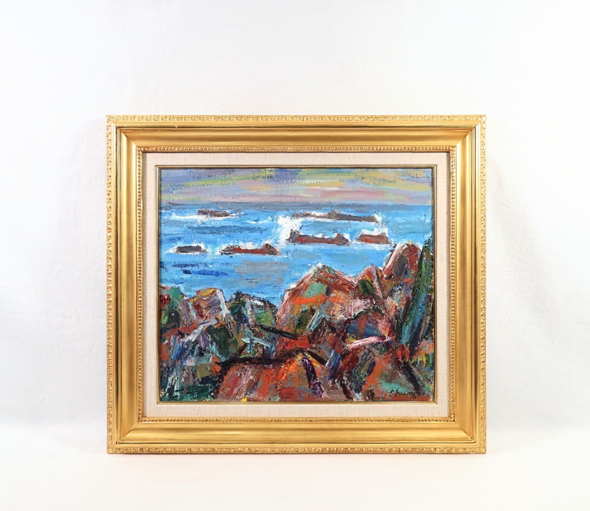 真作 大谷俊治 油彩「室戸岬」画寸 F10 東京都出身 新世紀美術協会会員 重厚、堅牢なマチエール 色遣い豊か ダイナミックな筆致の海景 7822