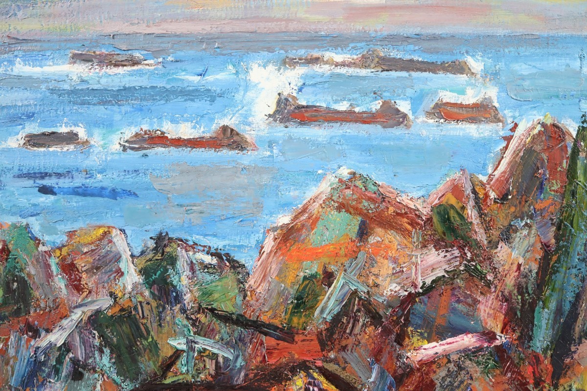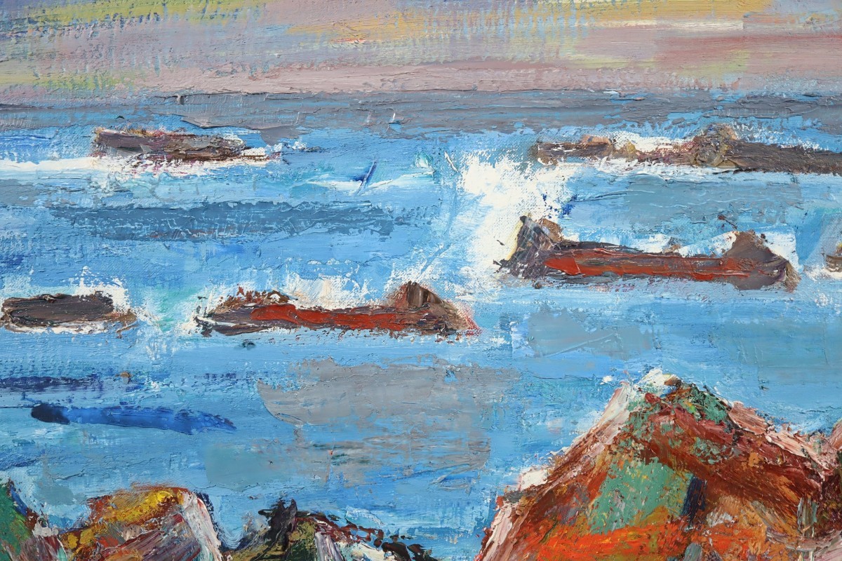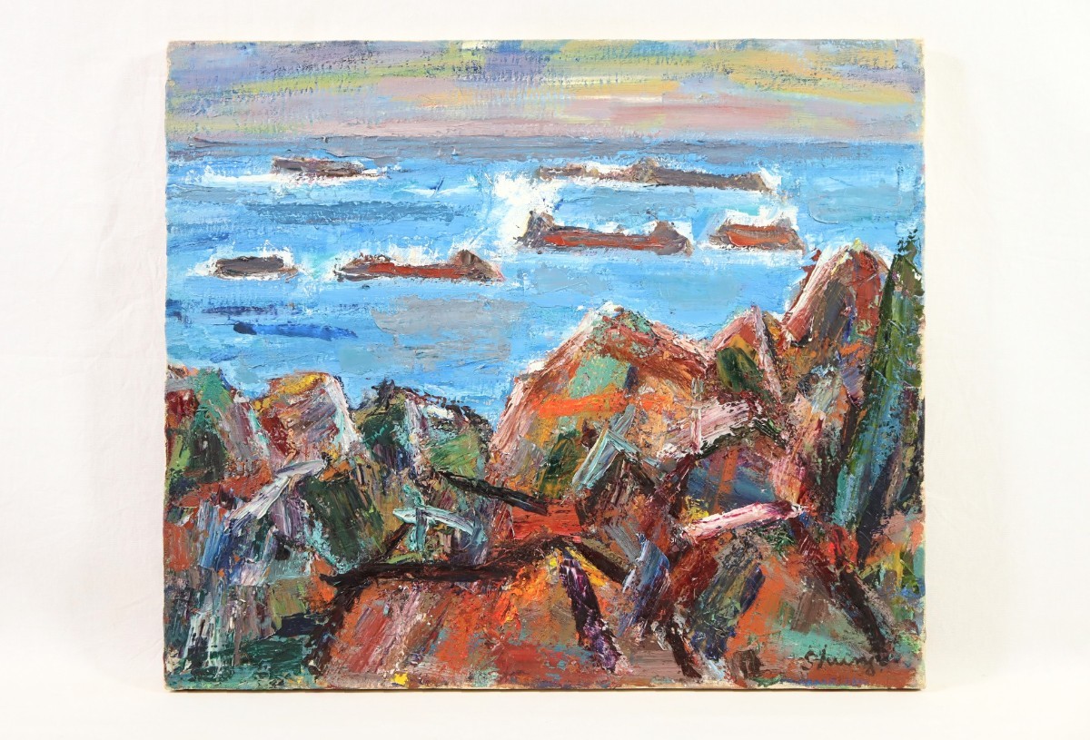 真作 大谷俊治 油彩「室戸岬」画寸 F10 東京都出身 新世紀美術協会会員 重厚、堅牢なマチエール 色遣い豊か ダイナミックな筆致の海景 7822