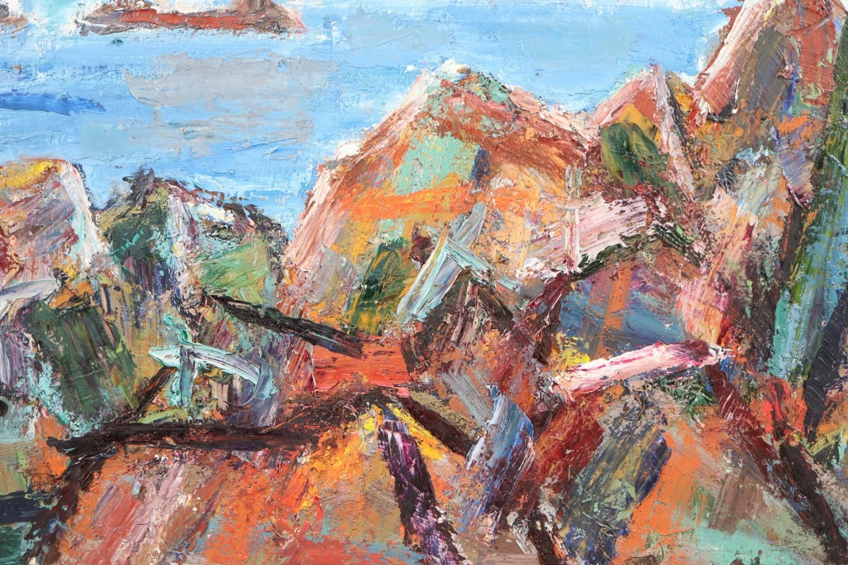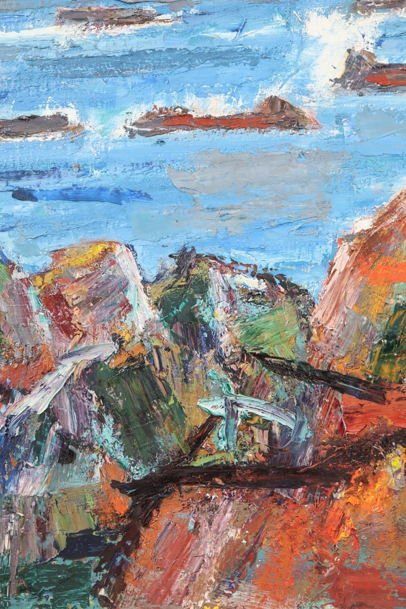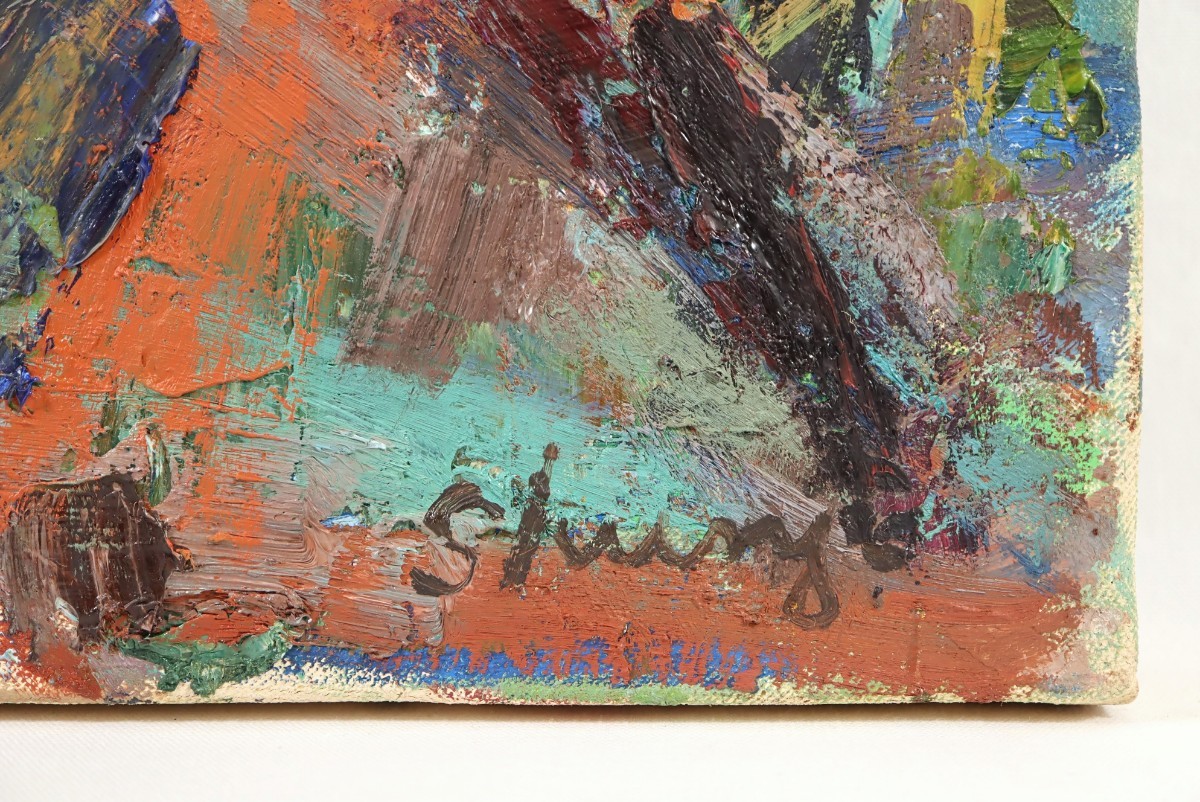 重厚、堅牢なマチエール、色遣い豊かに描いた見事な作品です。