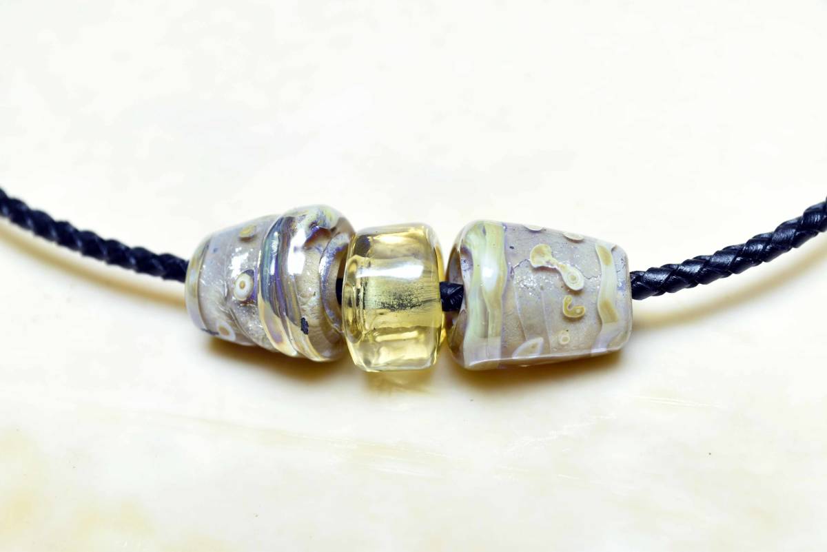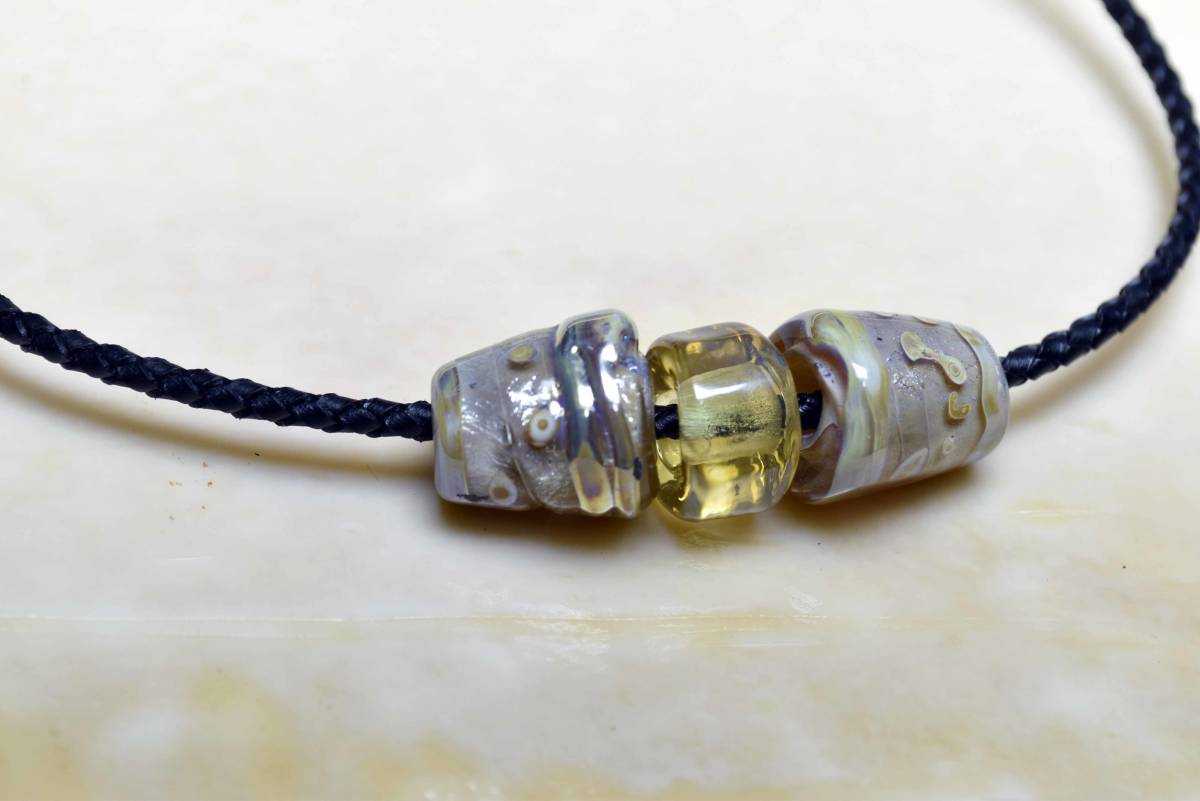 ガラス工芸家の創作した一点物のガラスのアクセサリー。トンボ玉 大きめの穴が開いています