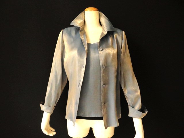 ■新品同様【 Nuovo Quaranta 】日本製 高級 光沢 玉虫 アンサンブル 9号 M タンクトップ オーバーブラウス セット 送料185円 w1686