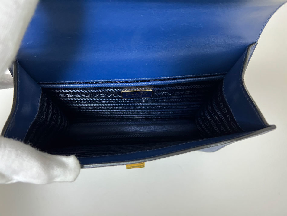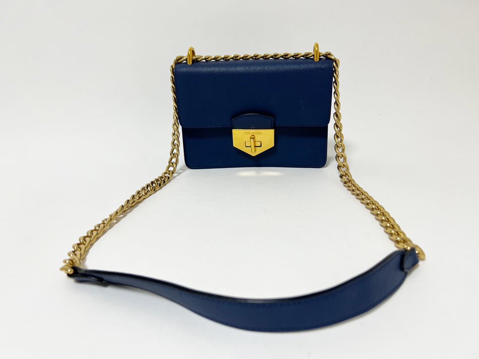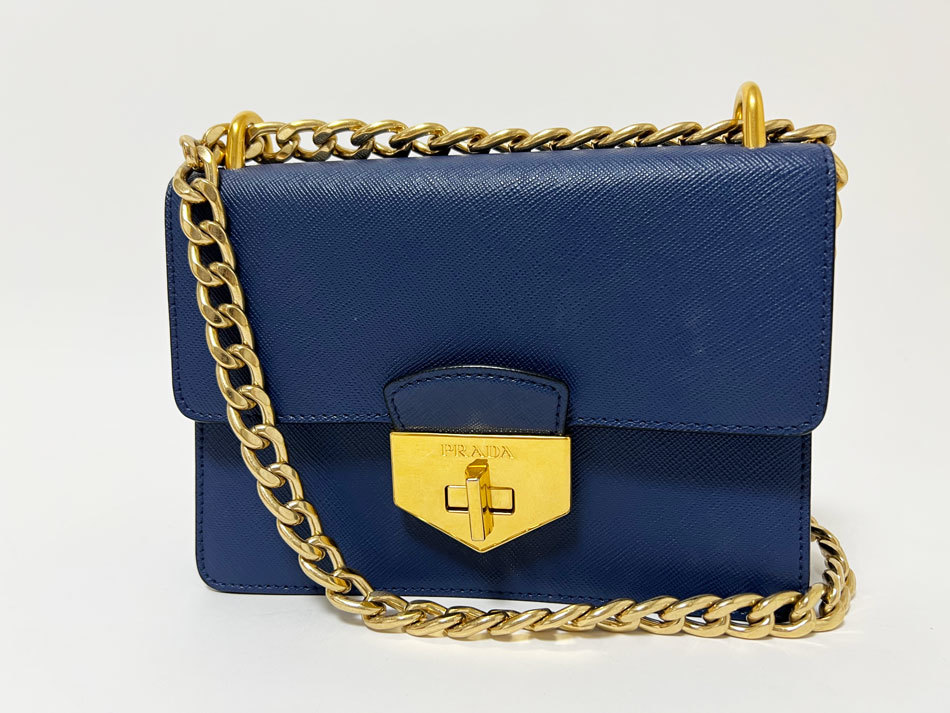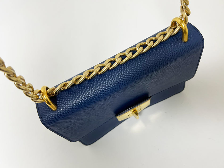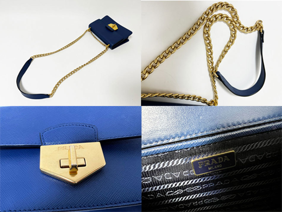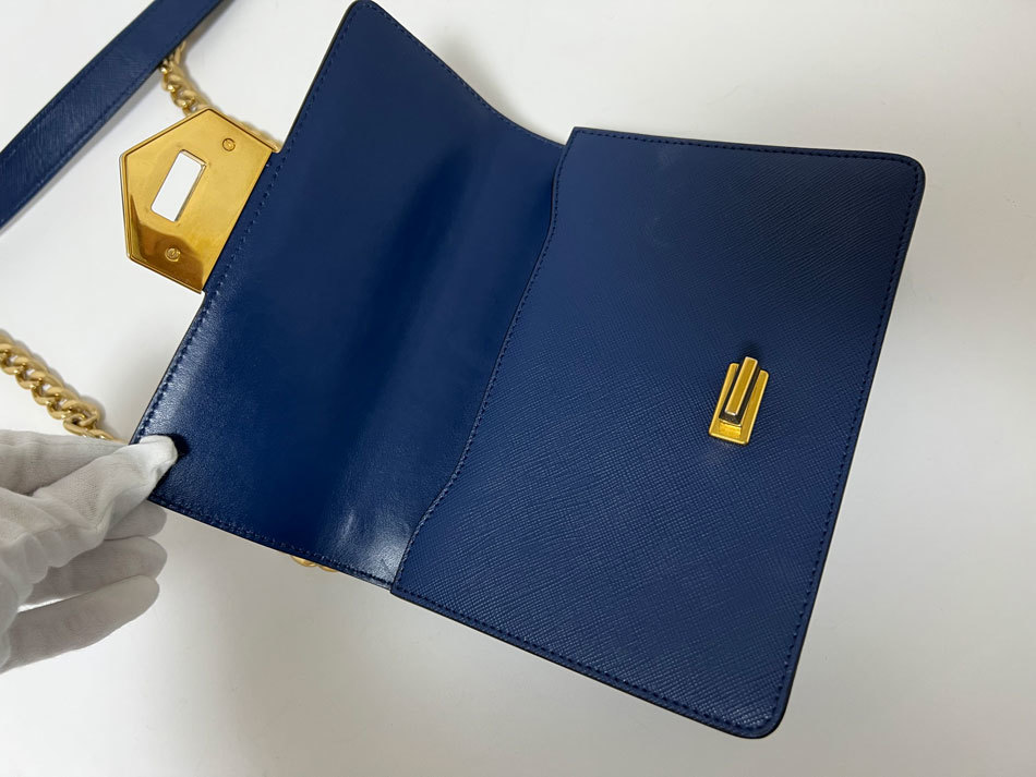 | 商品説明 | ツイストフラップ開閉式 内オープンポケット×1 プラダのサフィアーノレザーチェーンショルダーバッグです。 |