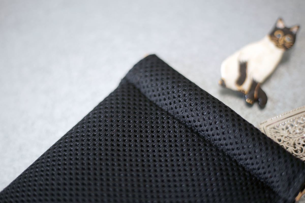 ダブルラッセルメッシュとは、3層メッシュ構造による通気性・軽量性・クッション性に優れた素材。