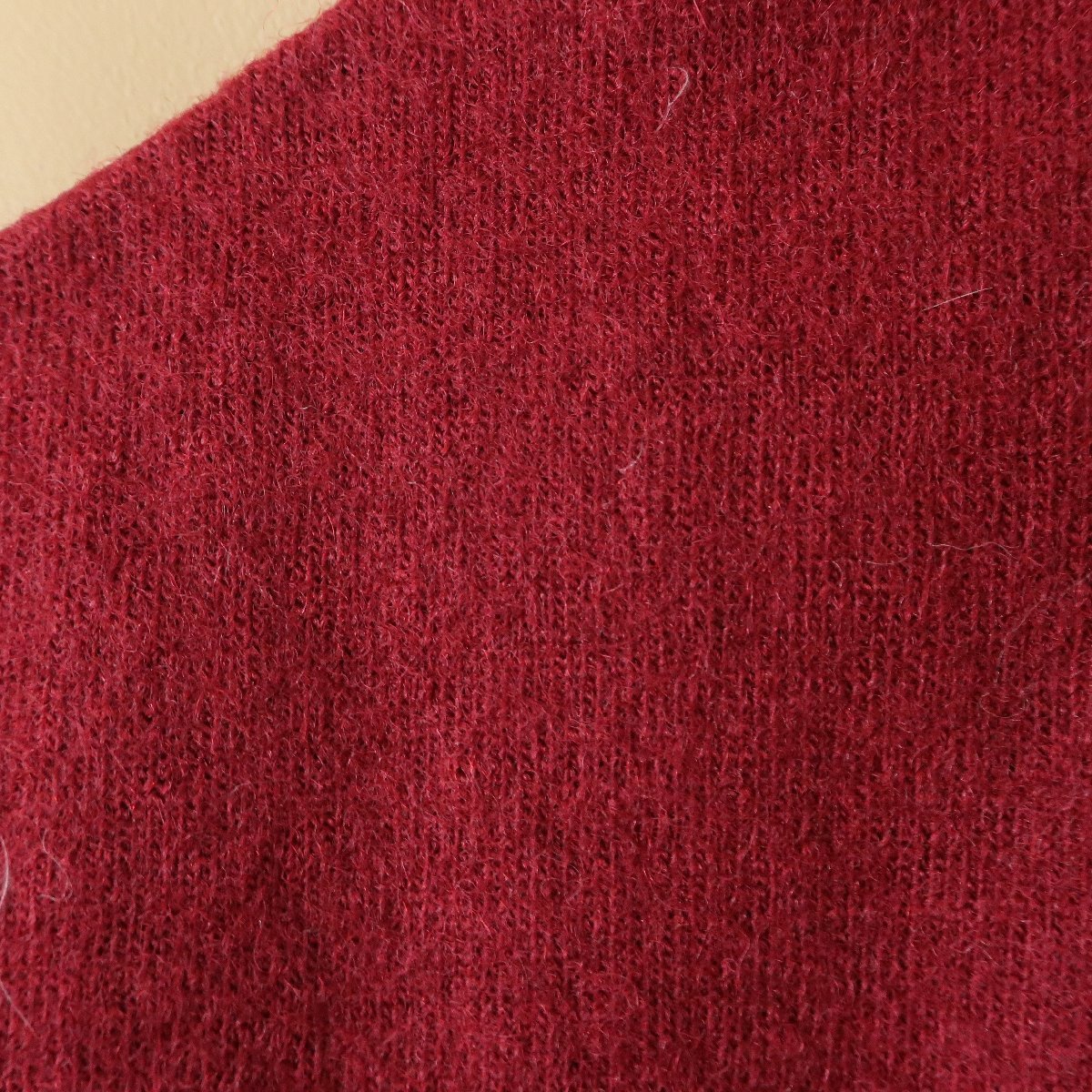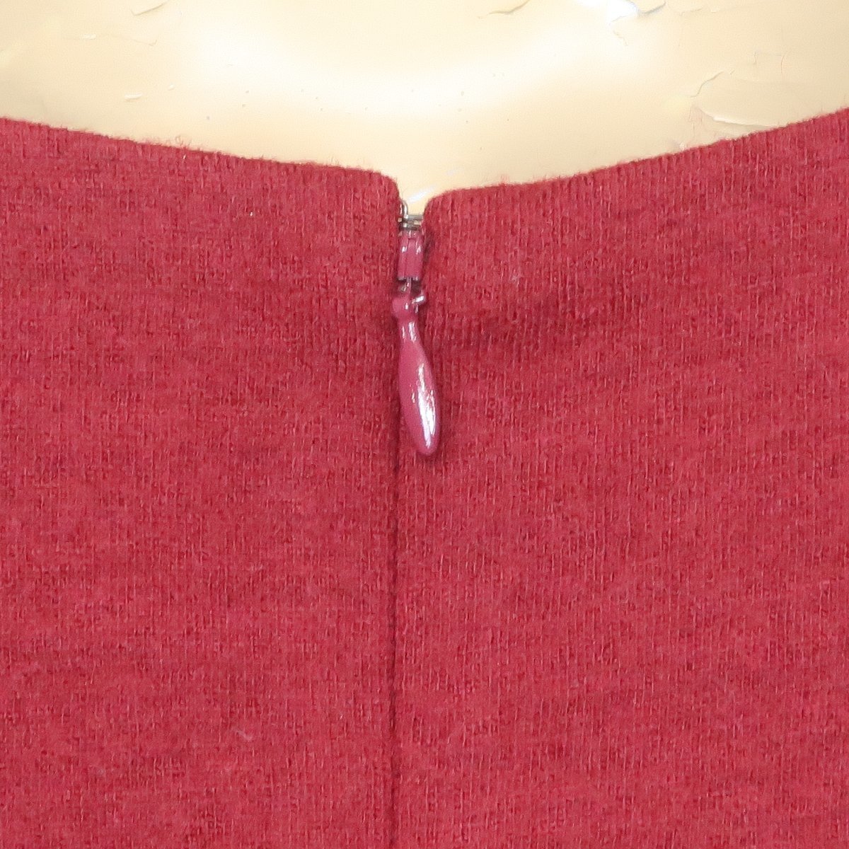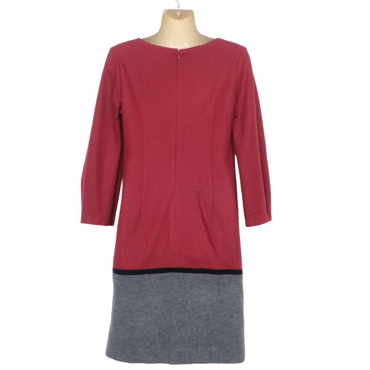 スーナウーナ★ワンピース 長袖 サイズ36 おしゃれな異素材ミックス ウール100!ボルドー×グレー系 z4368