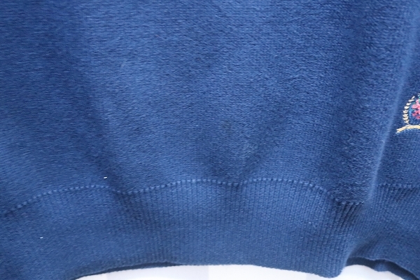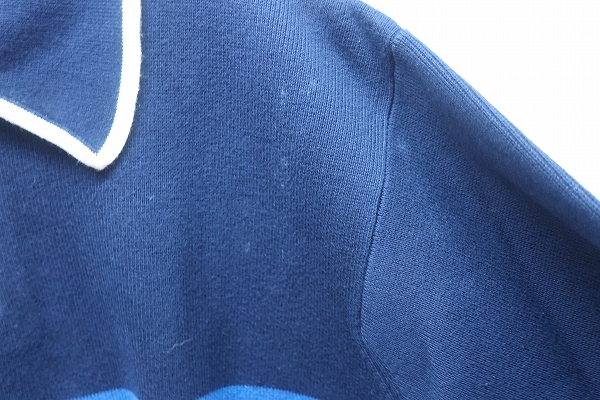 ホワイト部分に数カ所のシミ、生地の数カ所に薄汚れがございます。