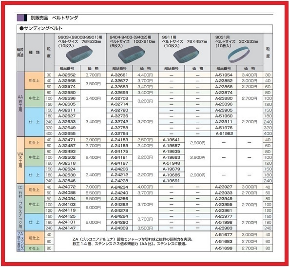 部品番号 | 粒度 | 種類 | 砥粒・用途 |