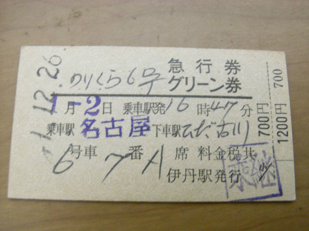 のりくら6号 急行券 グリーン券 乗車駅 名古屋 下車駅 ひだ古川 昭和51年12月26日 伊丹駅発行