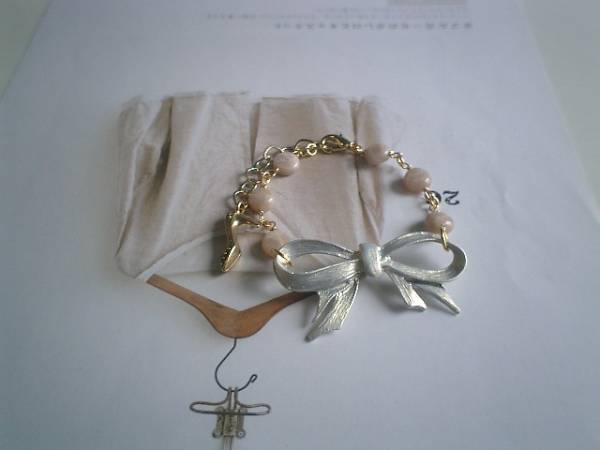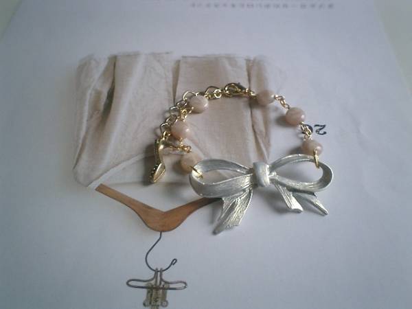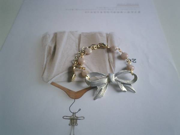エゴイスト・少女・・シリーズです♪大人色のリボン・・シックなオレンジムーンストーンとリボンのチャームのブレスレットです♪アンティークなイメージで可愛くまとめました♪繊細なオレンジムーンストーンは8ミリ位のコインです♪トップのリボンのメタルチャームは50×27ミリ位です♪シルバーグレーのお色が大人の表情です♪長さは全長23センチ位で調節自由です♪お揃いのネックレスも出品しています♪シンプルで飽きのこないいつまでも着けられるデザインを考えて作りました!ハンドメイドをご理解頂いてノークレーム、ノーリターンでお願いします
