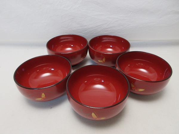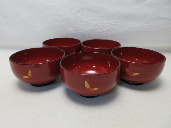 I07103 【 美品 懐石道具 山中塗 汁椀5客揃 金彩蒔絵 うるし塗 共箱 】 検) 茶道具 朱塗 和食器 茶事 来客 料亭 料理屋 おもてなし ⅰ