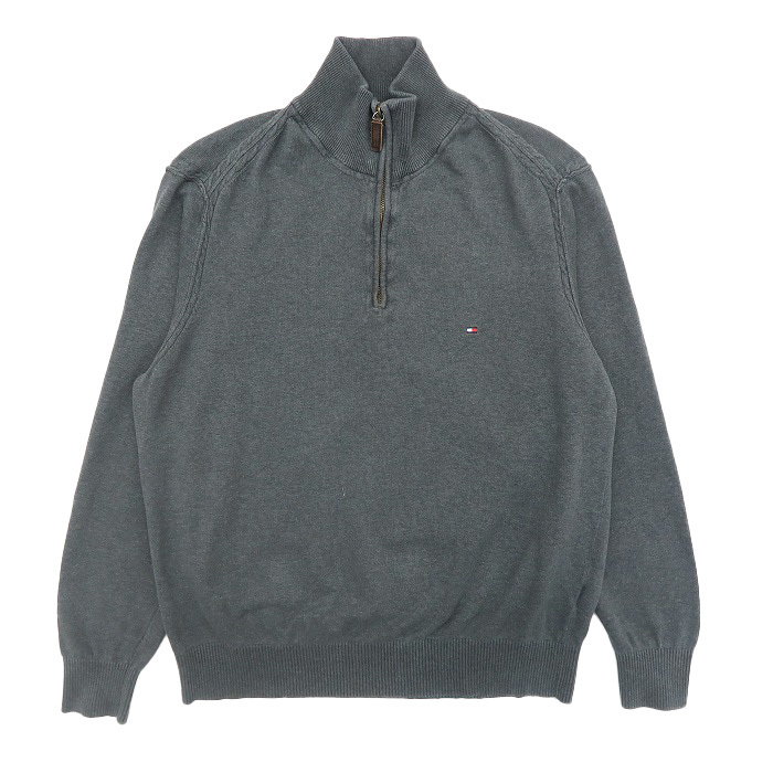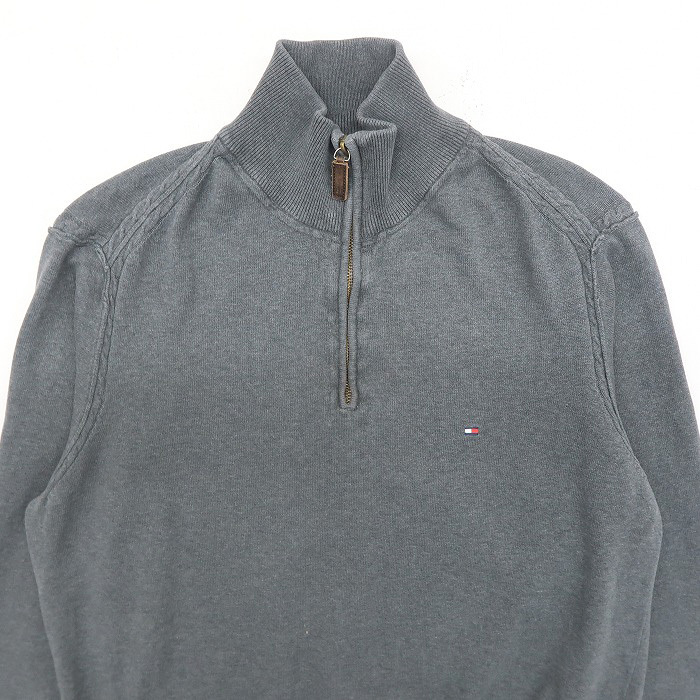 古着 TOMMY トミーヒルフィガー プルオーバー コットンニット セーター ハーフジップ ワンポイント グレー サイズ表記:L gd76086