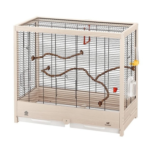 イタリアferplast社製のカナリア・インコ用ケージセット。エサ入れや水飲み容器や止まり木などが付属しており、すぐに飼育できるフルセットです。木製の風合いとスチールネットで、シンプルながら高級感があふれる鳥かごで、どんなお部屋にもマッチします。■サイズ:W69×D34.5×H58cm※イタリアのメーカーより商品の仕様、セット内容など変更が頻繁にありますので商品写真と異なる場合がありますがご了承下さい。Made in : Slovakia