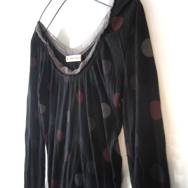 美品 PENNS NECK マルチカラー水玉プリント 長袖カットソー 黒