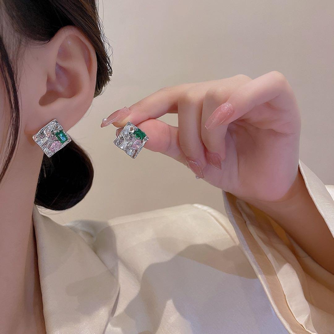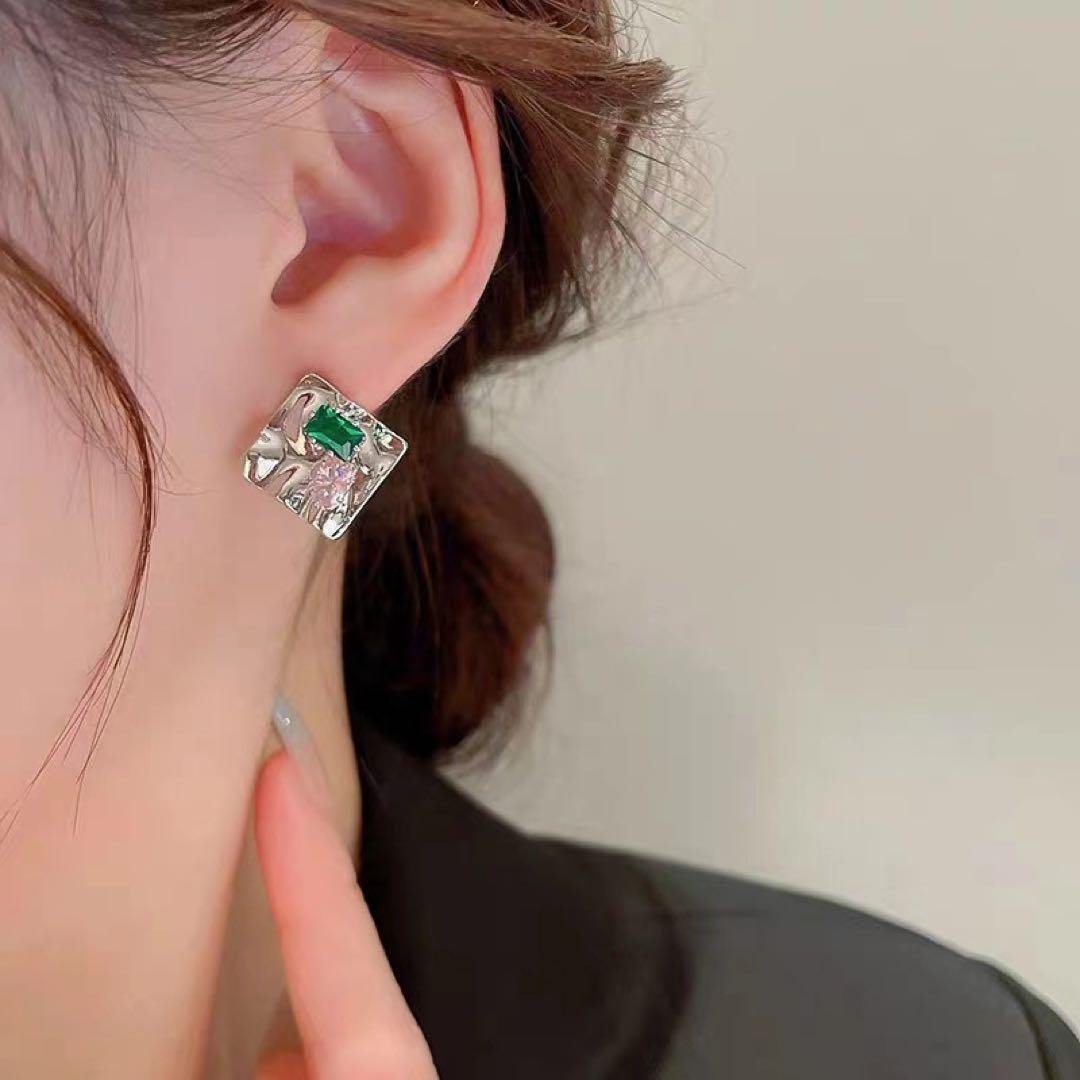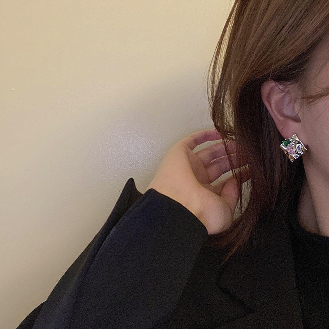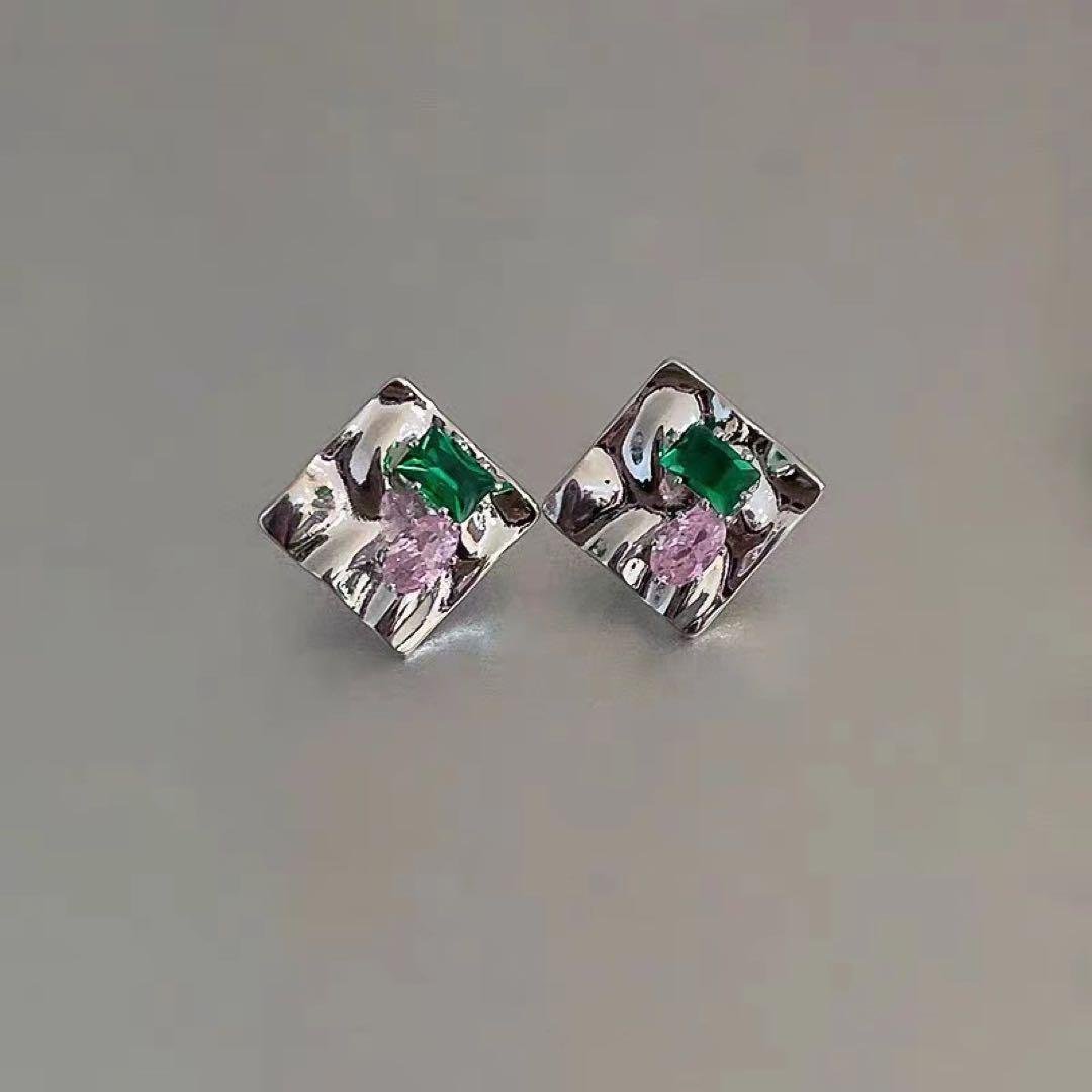 四角形ピアス レディースピアス 幾何形ピアス シルバー925ピアス 金属アレルギー対応