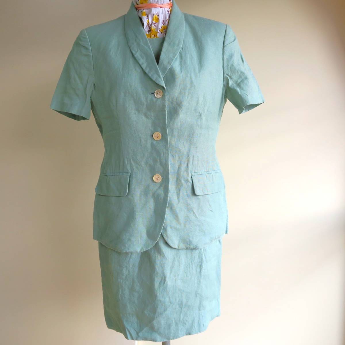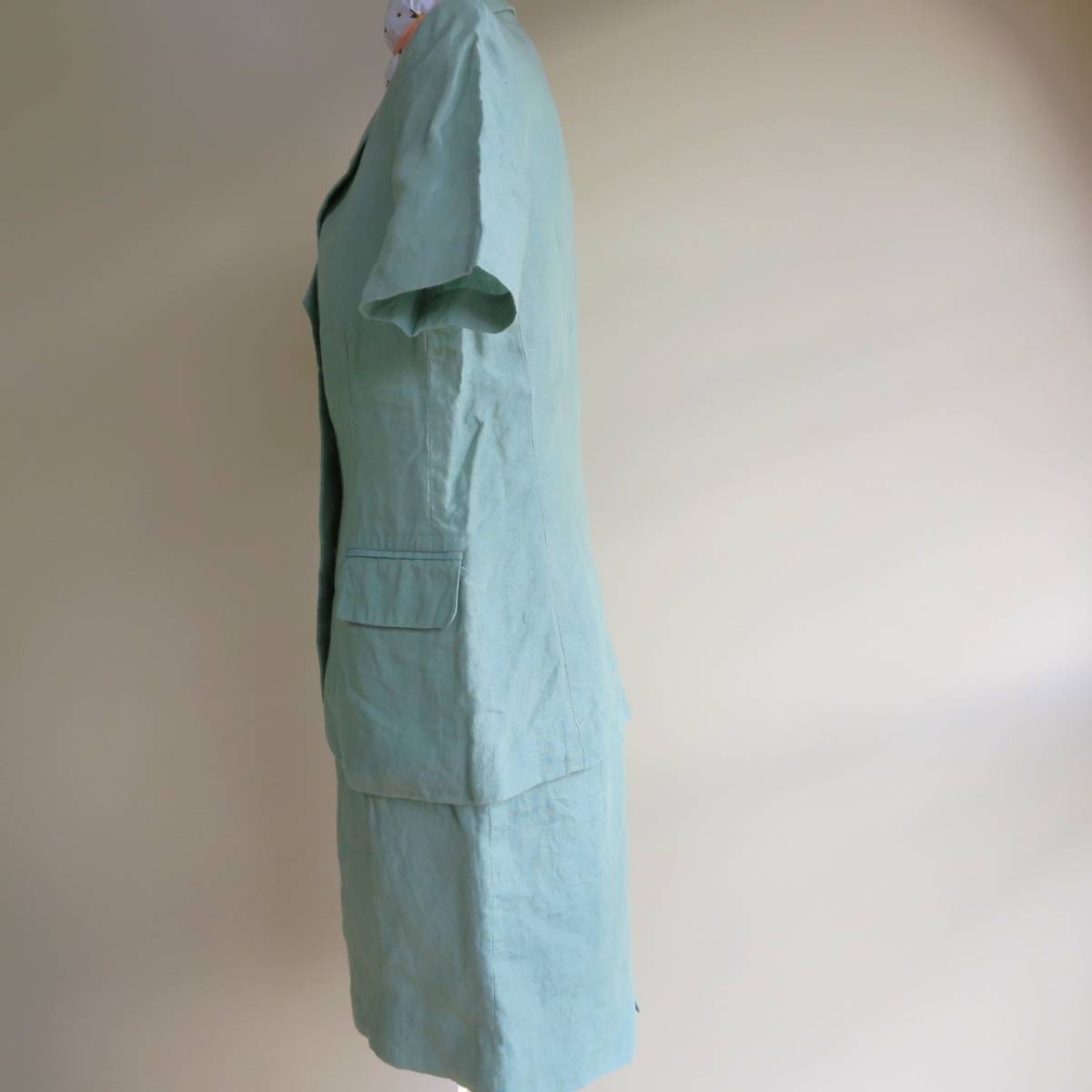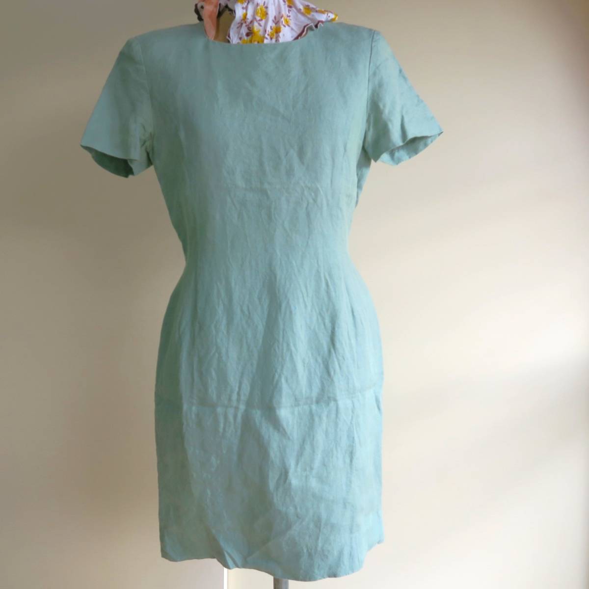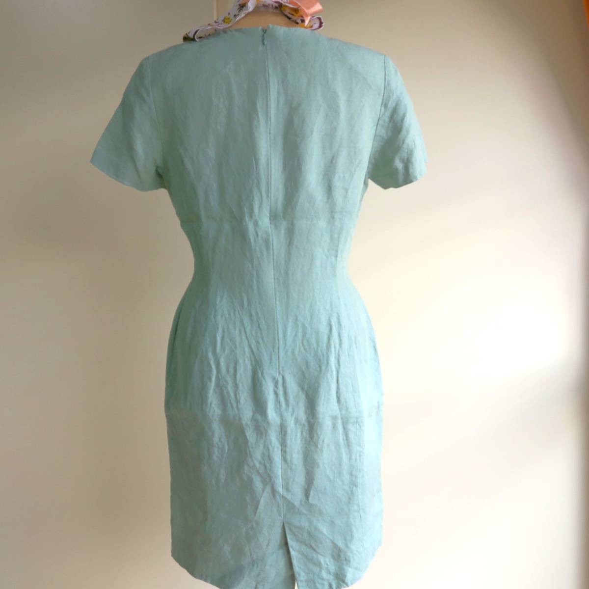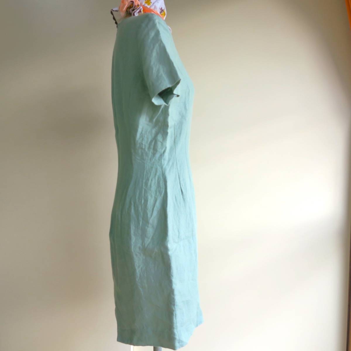 ◎Paul Stuart ポールスチュアート あさぎ色 シンプル 麻ワンピース 9号 上着有◎