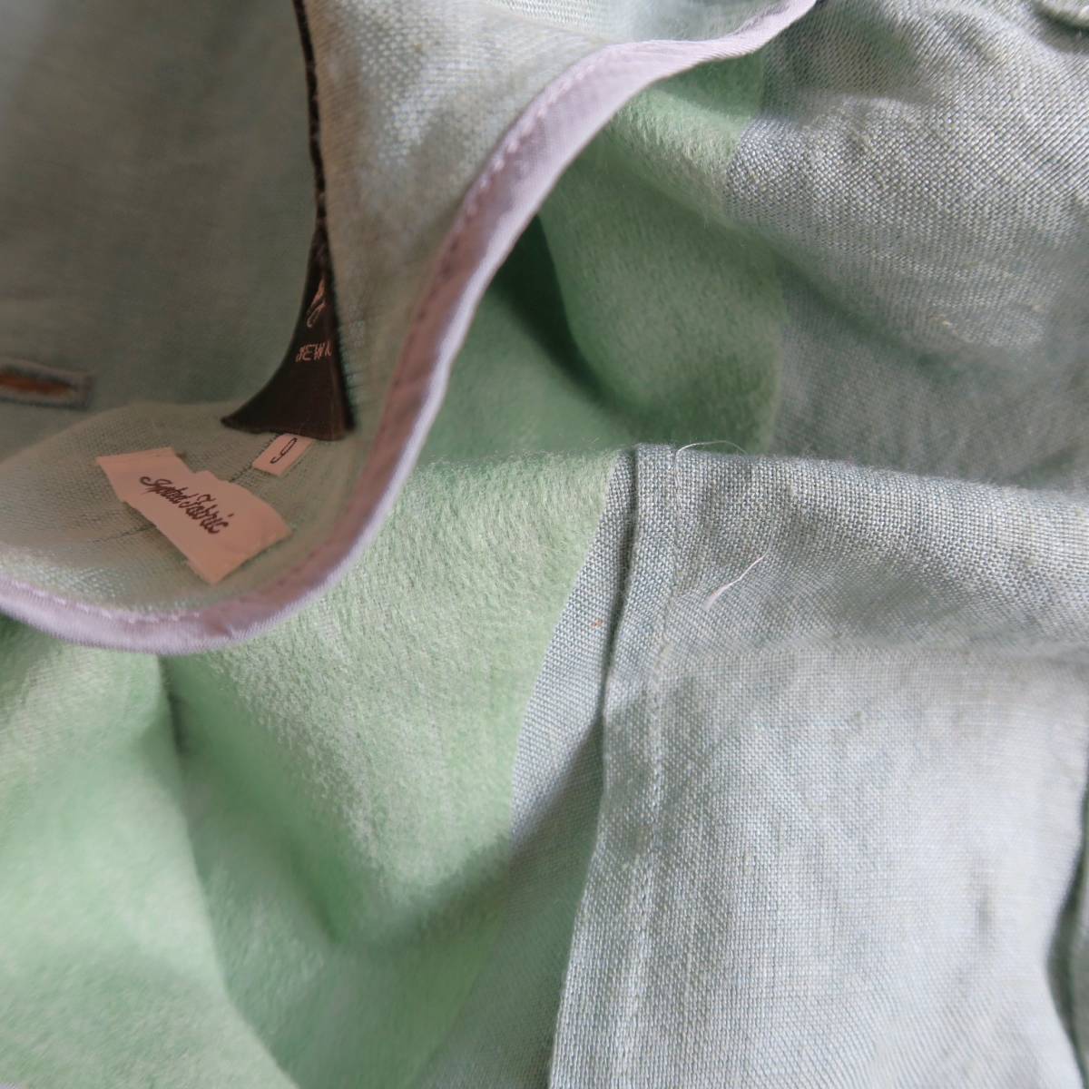 素材は、上着・ワンピースとも麻100%で、ワンピースのみに裏地があり、キュプラ100%になります。