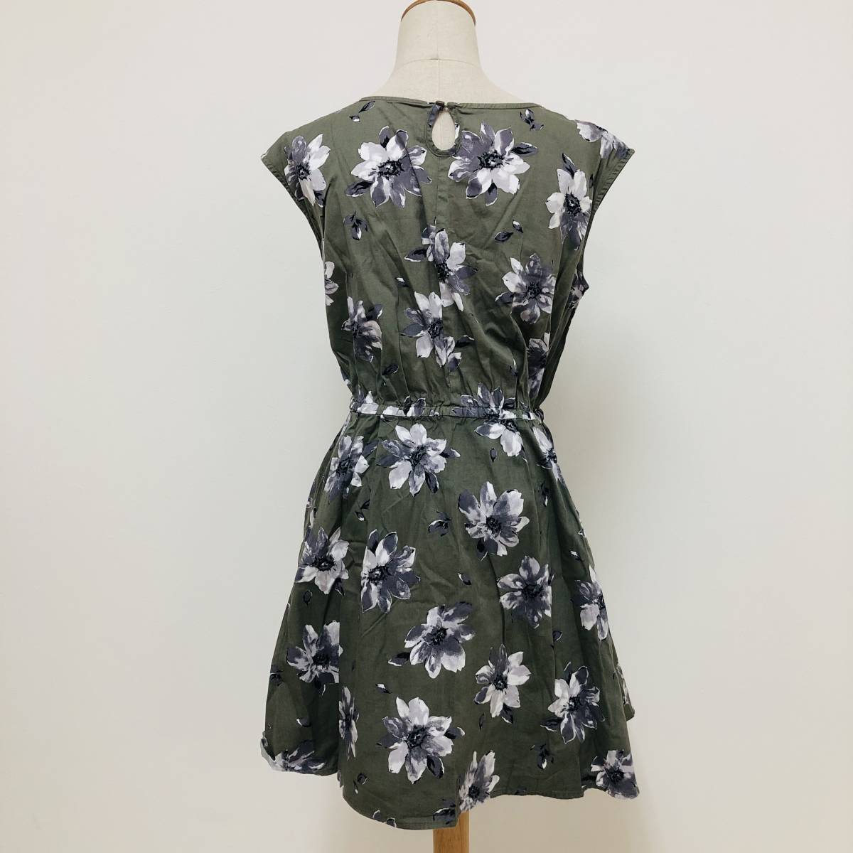 k1236 美品 AS KNOW AS アノゥアズ ワンピース ミニ丈 綿100% ノースリーブ 丸首 緑 花柄 レディース キュートなスイートスタイル