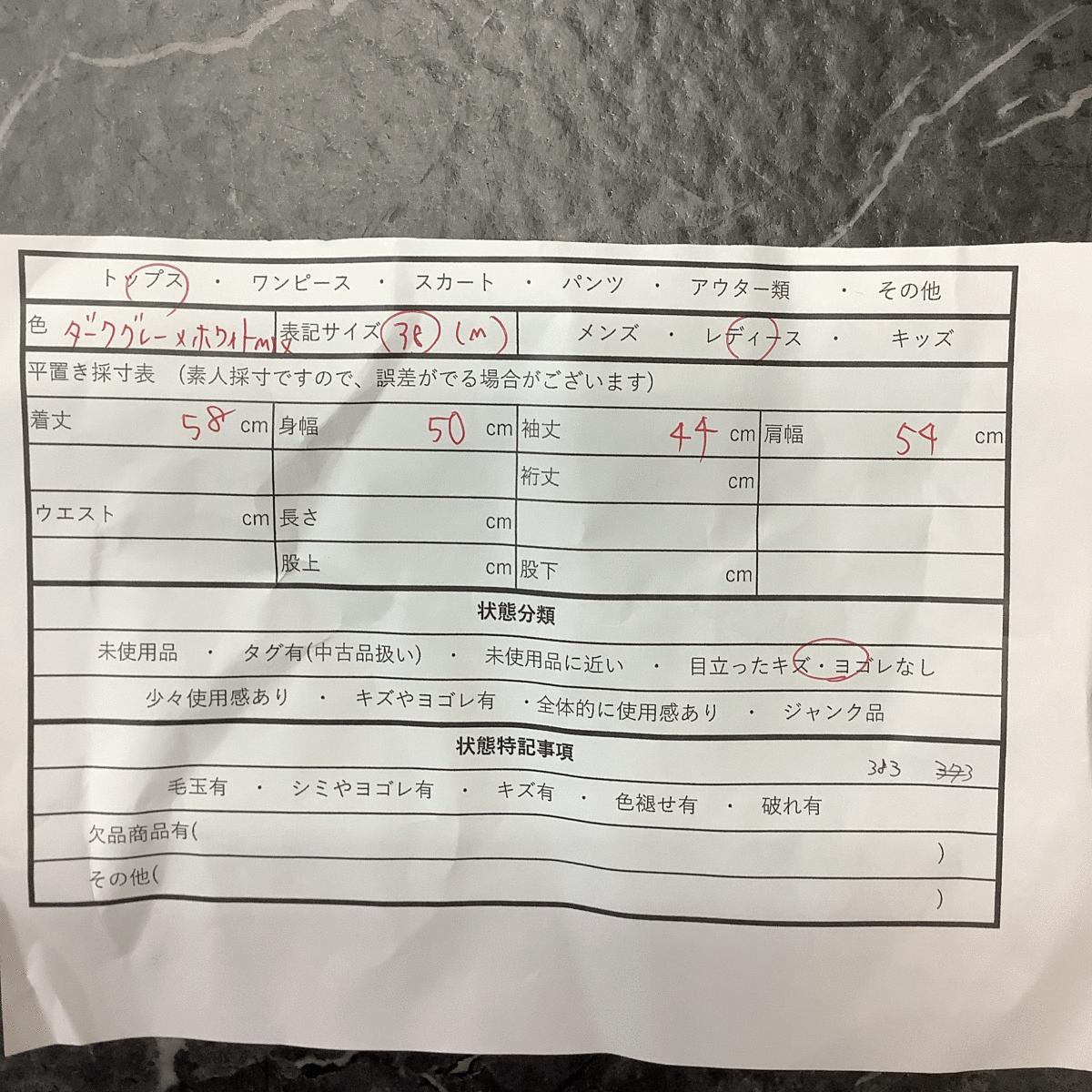 ・衣料品はたたみシワがある場合がございます。