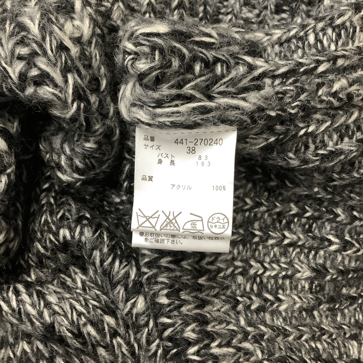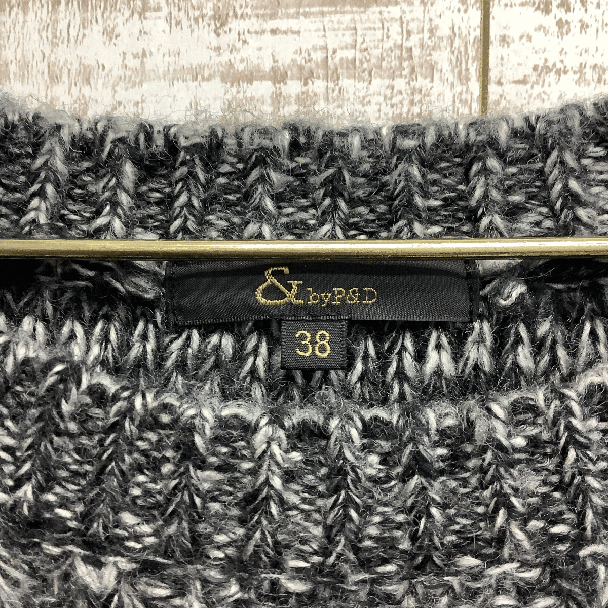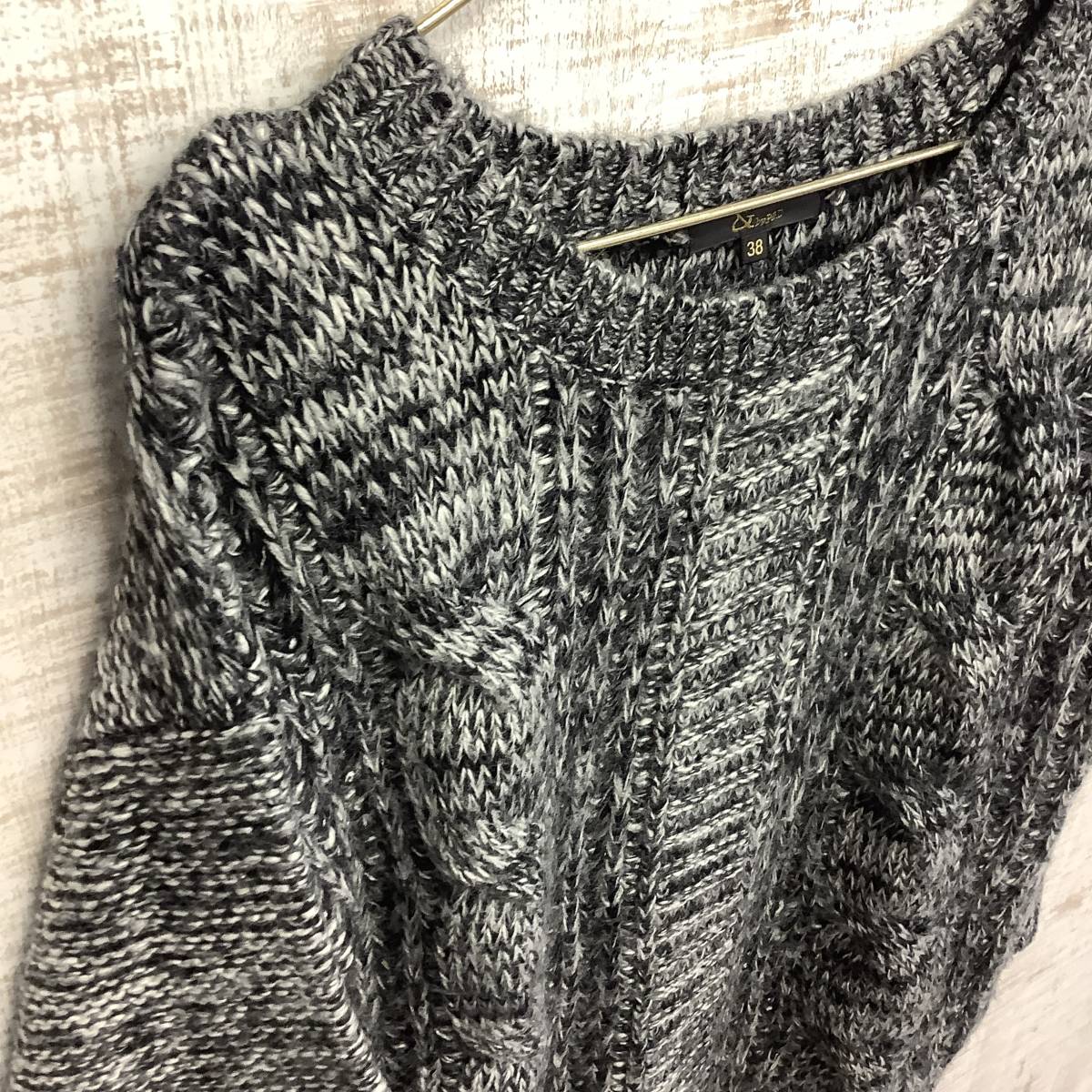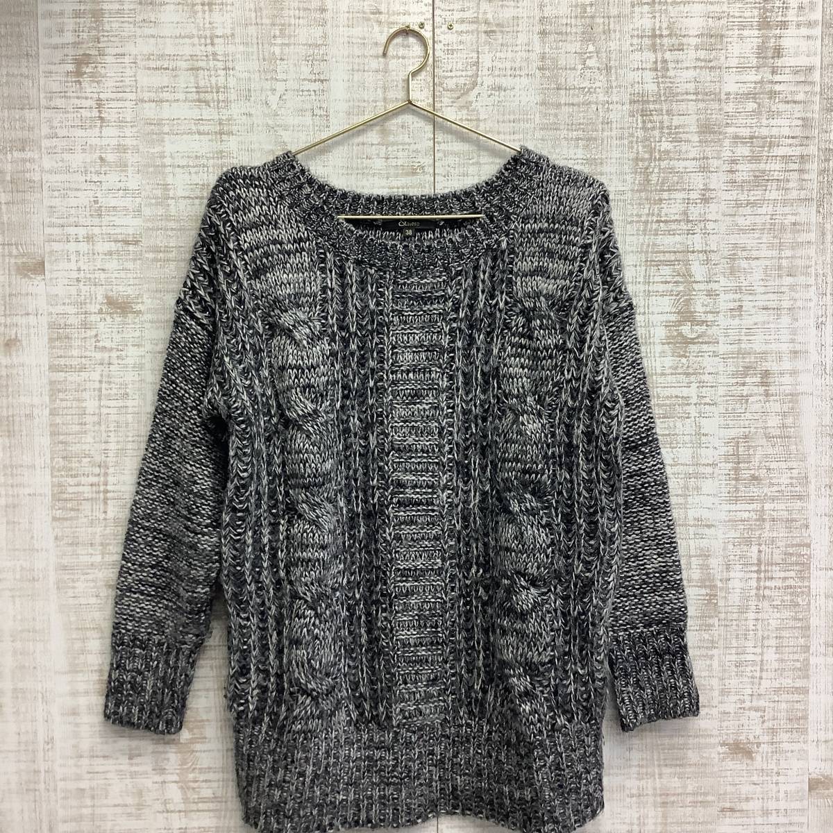 A383◇by P&D|アンドバイピーアンドディー ニットトップス ダークグレー×ホワイト サイズ38(M)