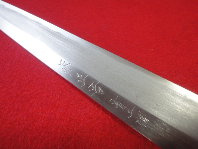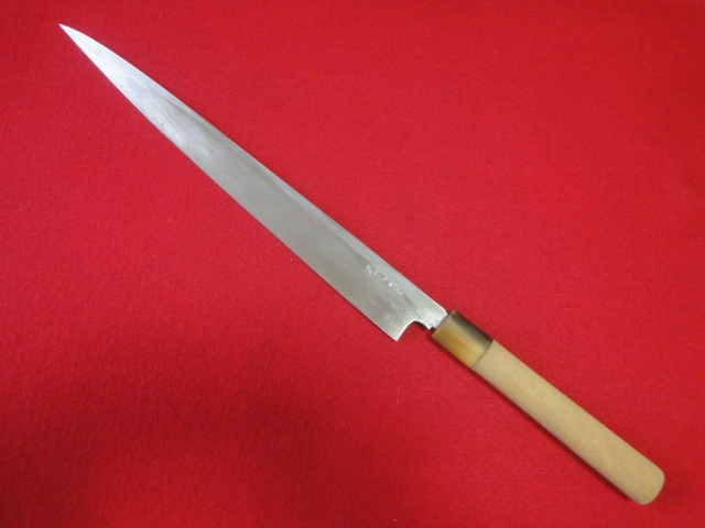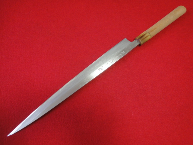 【源正吉】※青二鋼 刺身包丁 刃渡32㎝ 全長48.3㎝ 峰厚4.8mm ※片刃 中古品 全国一律送料1100円