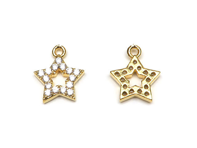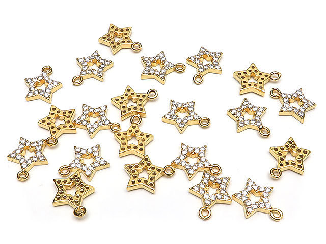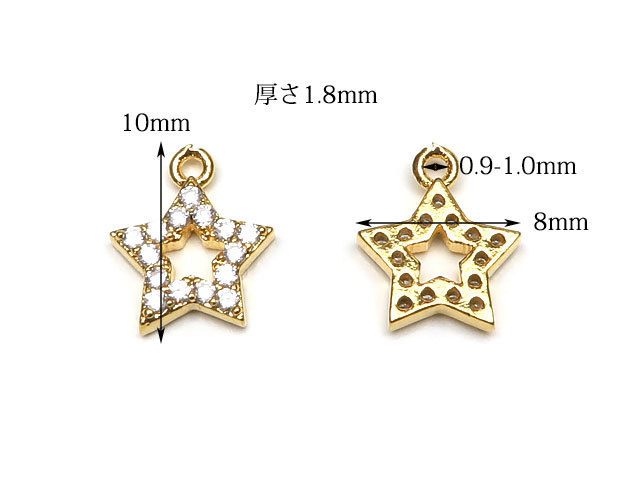 メタルパーツ キュービックジルコニア ゴールドカラー チャーム 星 8mm【3コ販売】 / 450-1 MTL-22G
