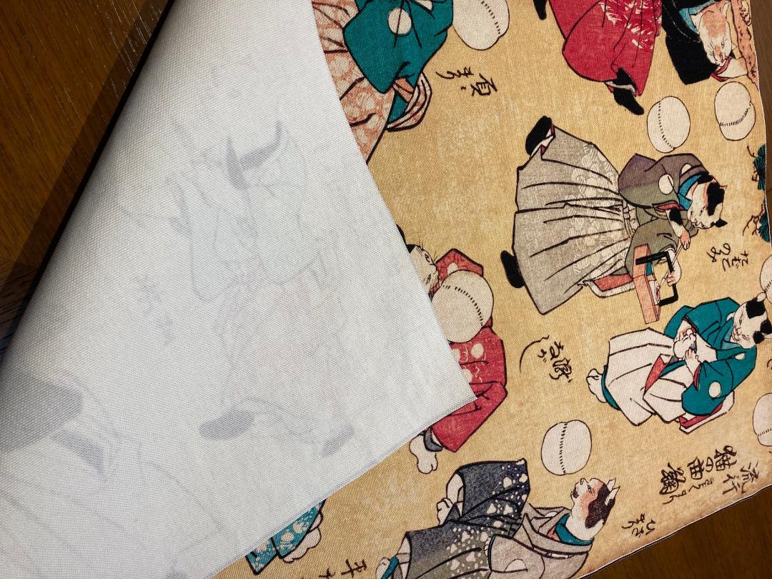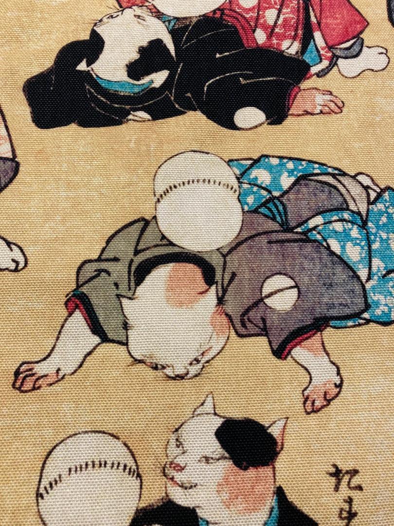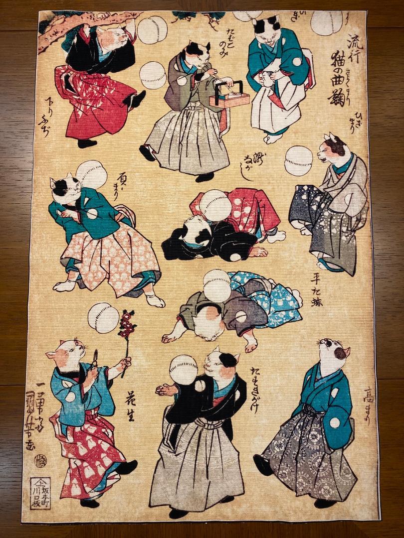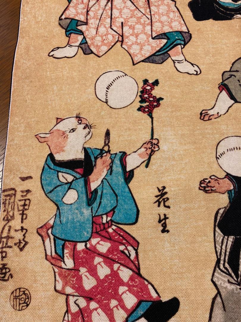 歌川国芳の流行り猫の曲鞠を8号帆布にプリントしました。