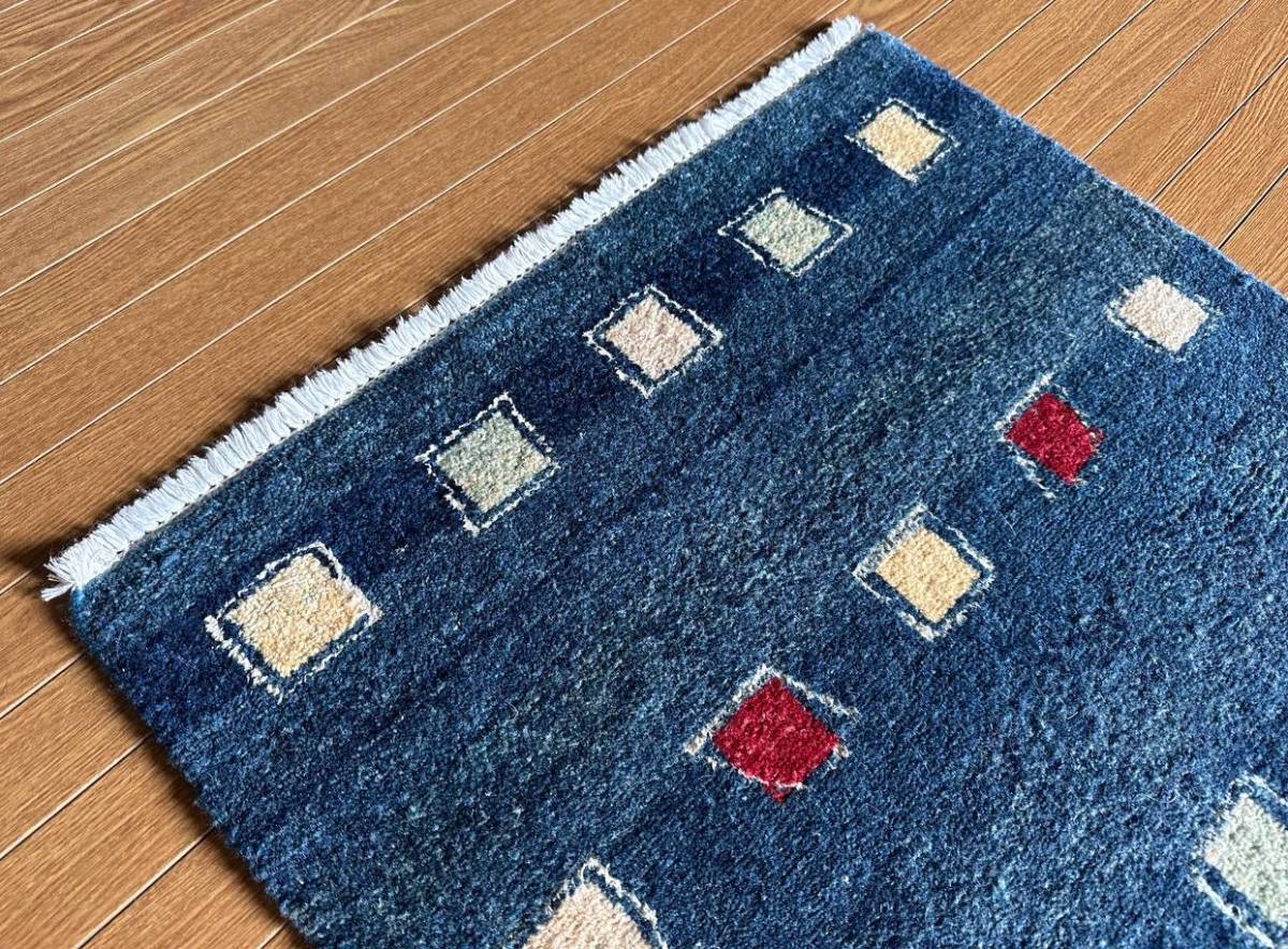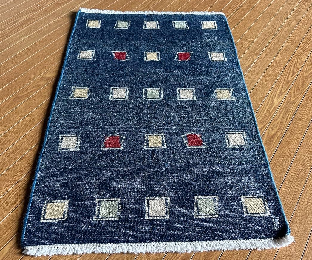 商品説明 | ★素材 : ウール・手織り ★サイズ : 約 90×61 cm (房を含まない長さです) ★厚み : 約 1 cm ★産地 : パキスタン ★状態 : 中古/クリーニング済み |