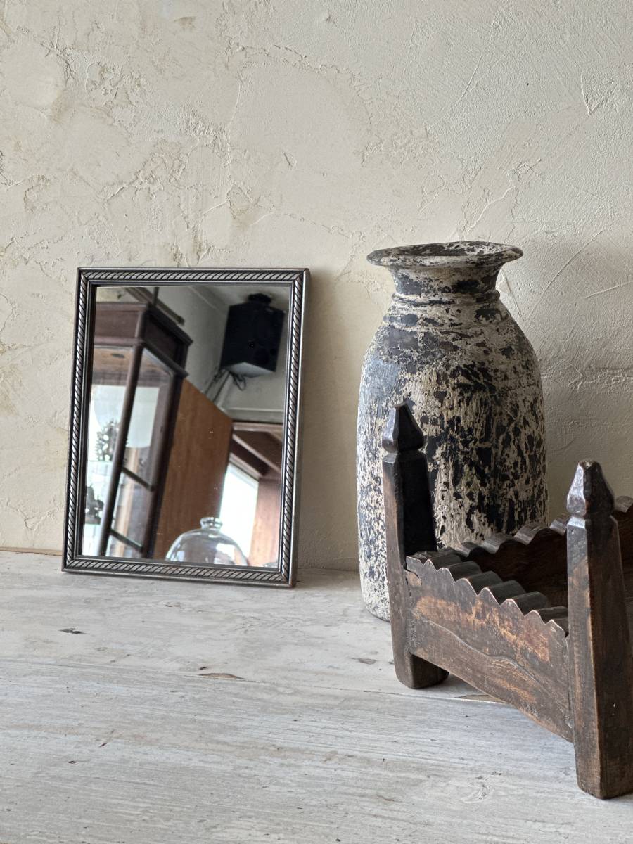 とてもシンプルな古木フレームのシャビーな壁掛けミラーです。