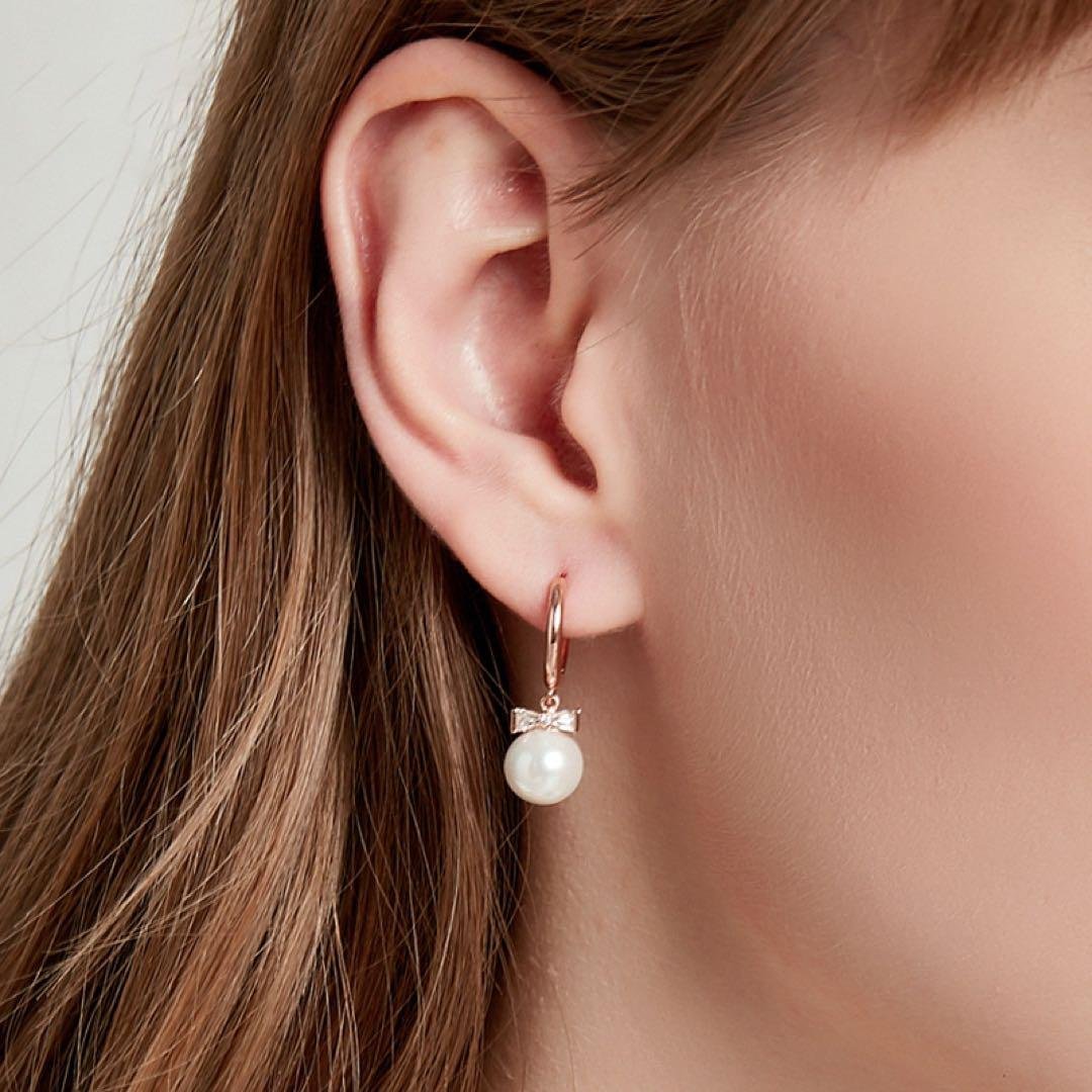 新品 リボンパールピアス パールピアス レディース ピアス シルバー925 ピアス アレルギー対応 ins風