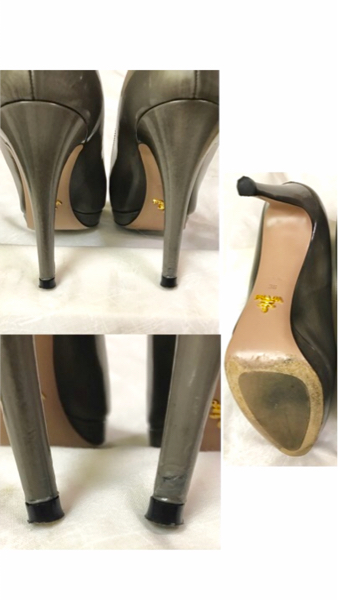 | | 正規品です 素材・・・本革 色・・・グレーとカーキの合わさったような色。 ムラのある染。画像よりかなり明るいお色です。 サイズ・・・38 (24cm) ヒールの高さ 10cm (つま先ヒール1.2㎝) 箱なし 傷の状態・・・両つま先、右ヒール下、左前ヒール両サイド。 いずれも一応修理済(画像参照) 内側は特に記述するダメージはなくきれいな状態。 ●使用品であることをご了承ください。 ●個人保管ですので、臭いなどご心配な方はとても残念ですが、ご入札をお控えいただきますよう お願いいたします。 ●上記ご理解のある方のご入札をお待ちしております。 ●ご入札後のキャンセル、返品はご遠慮しております。ご了承下さい。 ●質問大歓迎です!! | ||