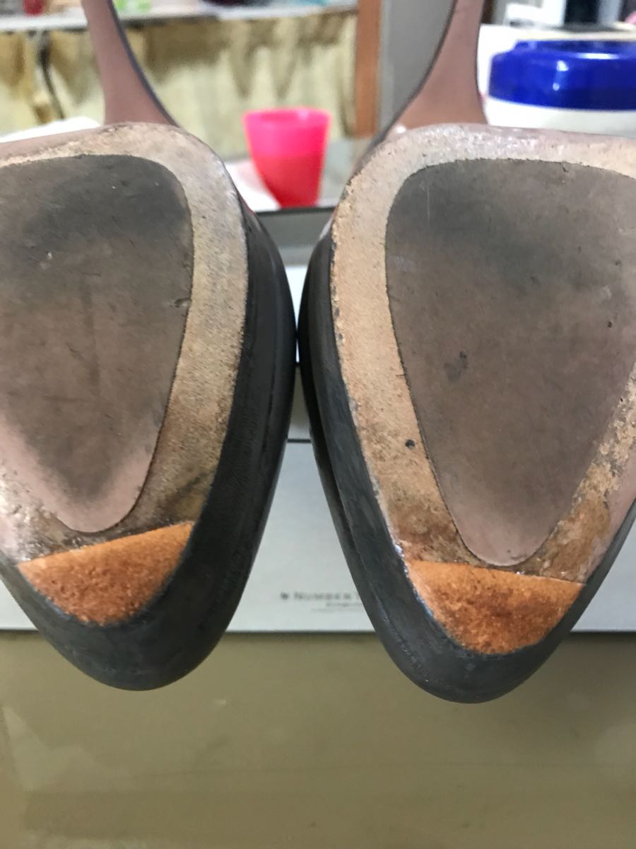 | | 正規品です 素材・・・本革 色・・・グレーとカーキの合わさったような色。 ムラのある染。画像よりかなり明るいお色です。 サイズ・・・38 (24cm) ヒールの高さ 10cm (つま先ヒール1.2㎝) 箱なし 傷の状態・・・両つま先、右ヒール下、左前ヒール両サイド。 いずれも一応修理済(画像参照) 内側は特に記述するダメージはなくきれいな状態。 ●使用品であることをご了承ください。 ●個人保管ですので、臭いなどご心配な方はとても残念ですが、ご入札をお控えいただきますよう お願いいたします。 ●上記ご理解のある方のご入札をお待ちしております。 ●ご入札後のキャンセル、返品はご遠慮しております。ご了承下さい。 ●質問大歓迎です!! | ||