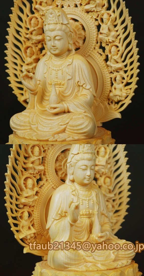 観音様 観音菩薩 木彫り 仏像 観世音菩薩 観自在菩薩 救世菩薩 フィギュア 観音菩薩像 座像 仏教美術 置物 木彫 仏像