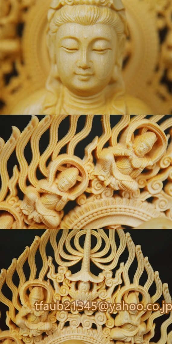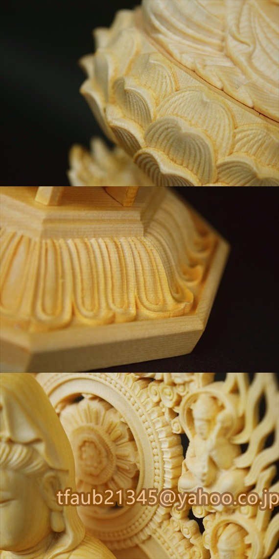 台座込みの総サイズ:高さ:約28cm 下辺の横:約12.3cm 下辺の厚み 約12.3cm 彫り:手彫り&機械彫り 素材:桧木