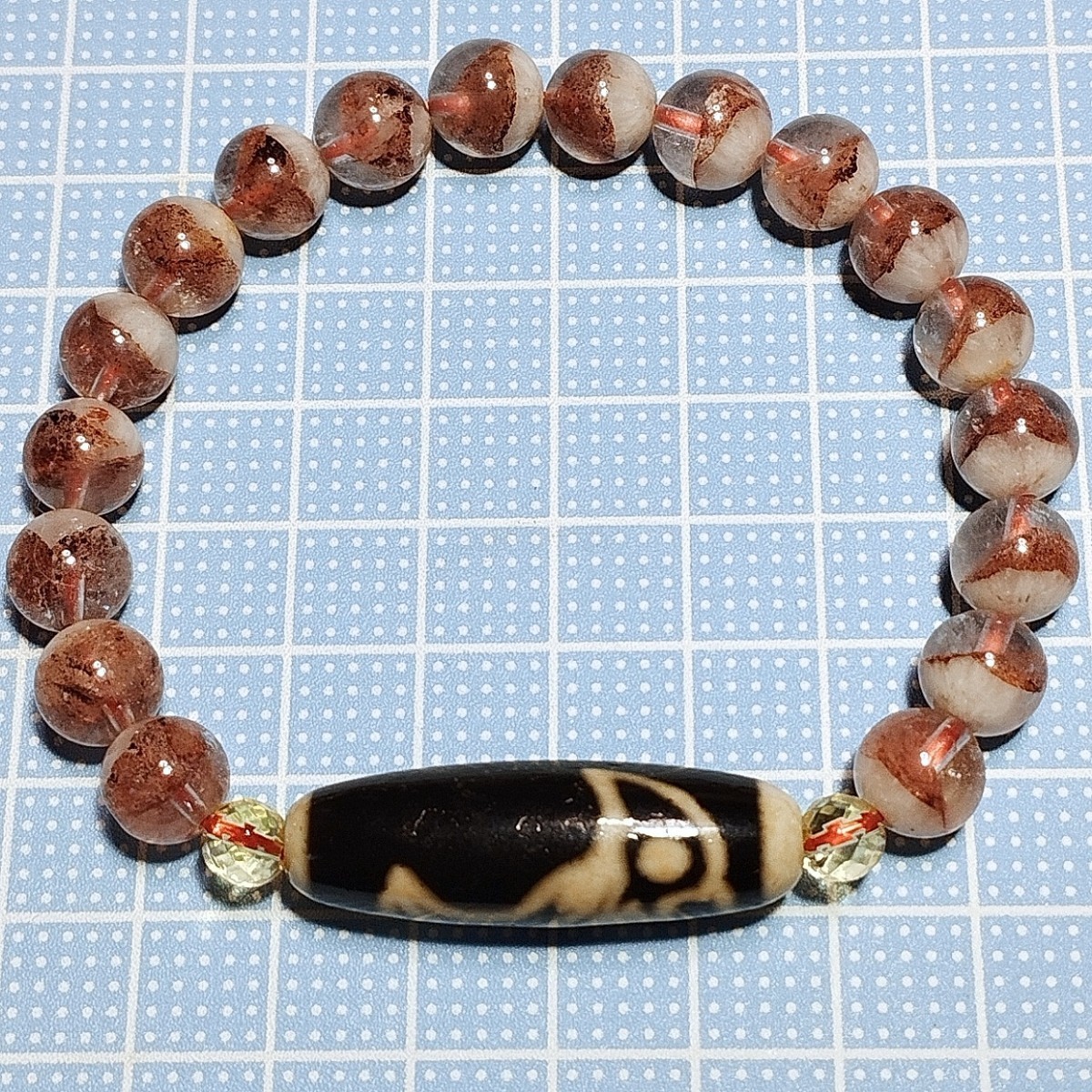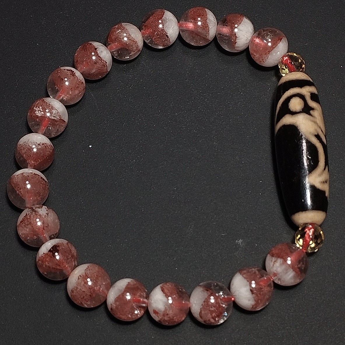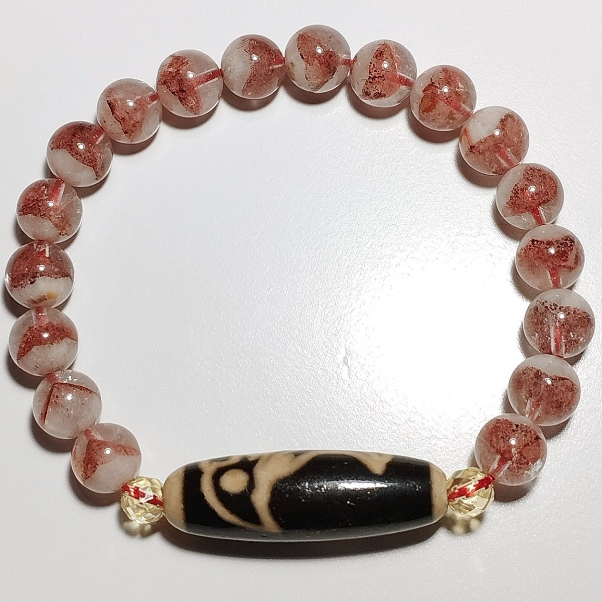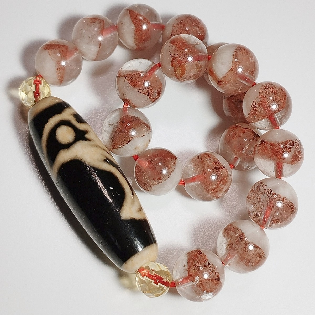 神鷹天珠(鷹神天珠)とレッドファントムクォーツのブレスレットです。