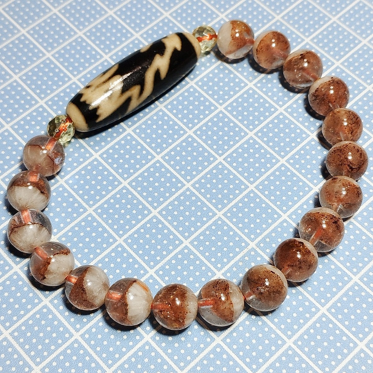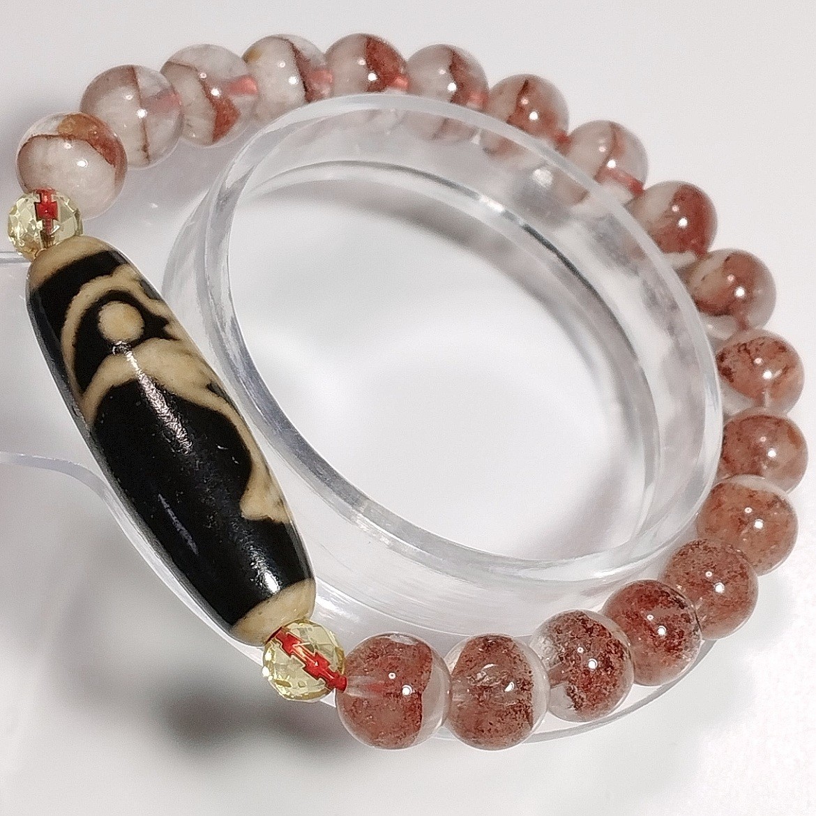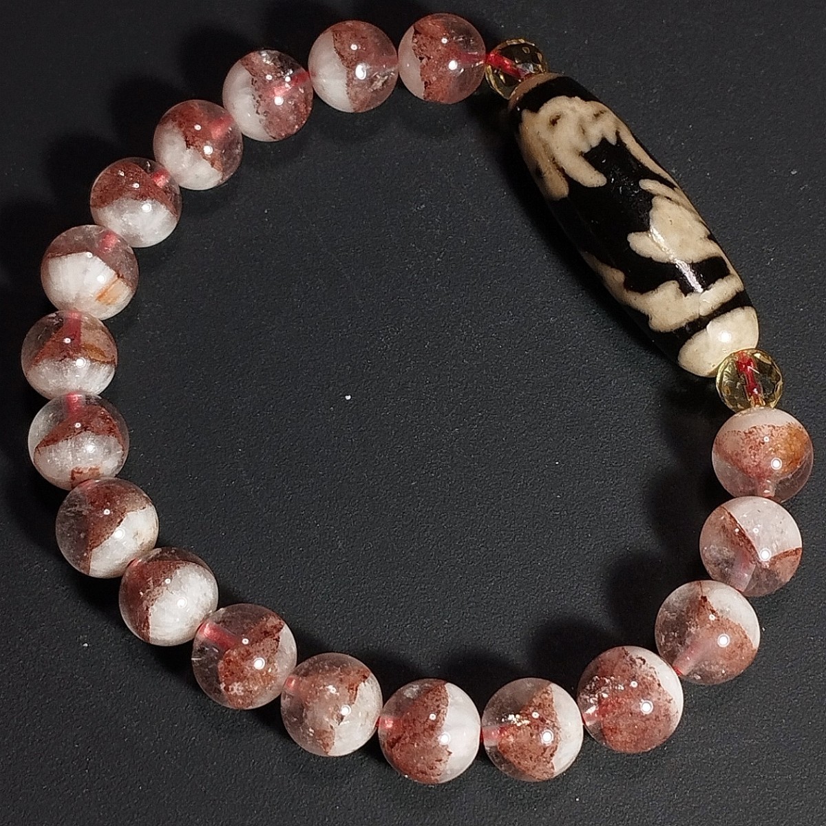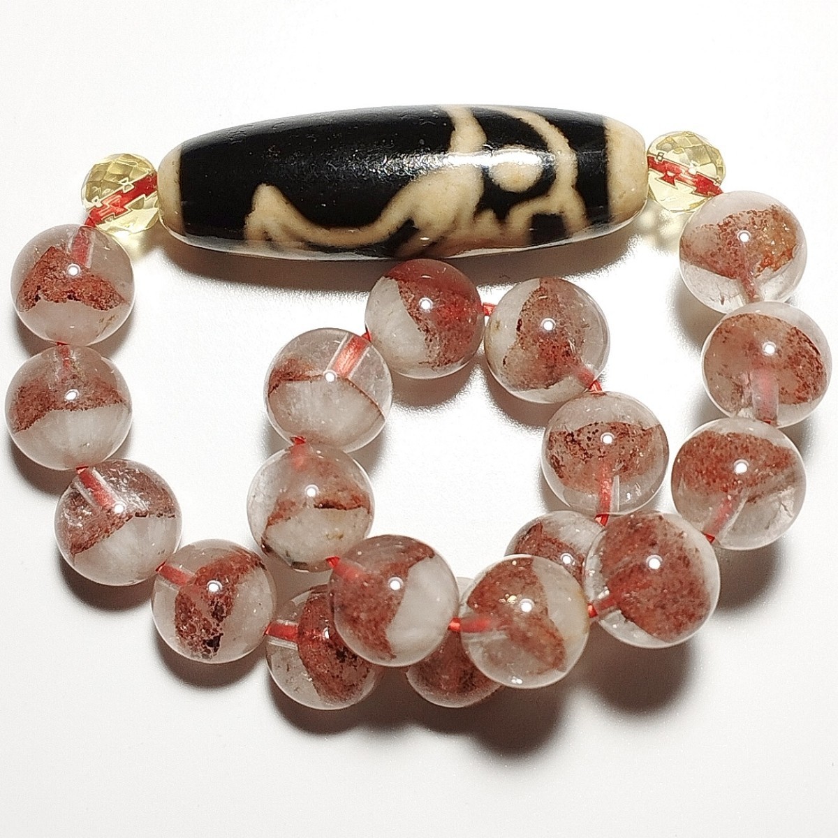 神鷹天珠(鷹神天珠)とレッドファントムクォーツのブレスレットです。