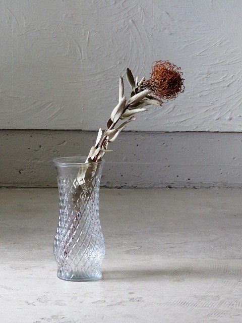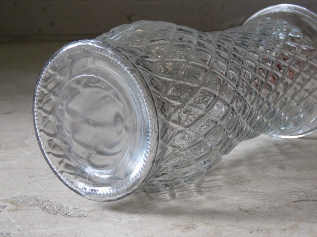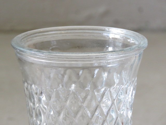 u82昭和レトロ プレスガラス フラワーベース/アンティーク*ビンテージ*花瓶*花入*ダイヤ*ディスプレイ*什器*ガラス瓶*ポット*ボトル*カフェ