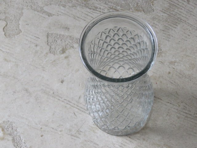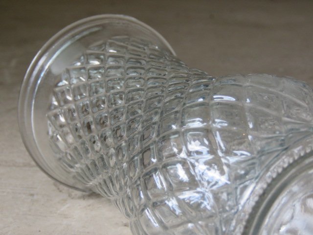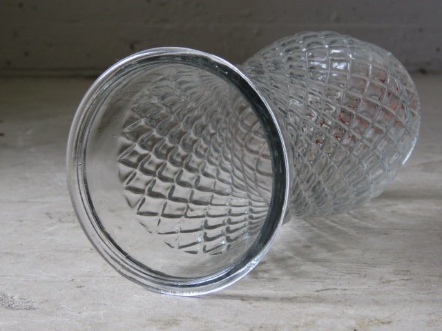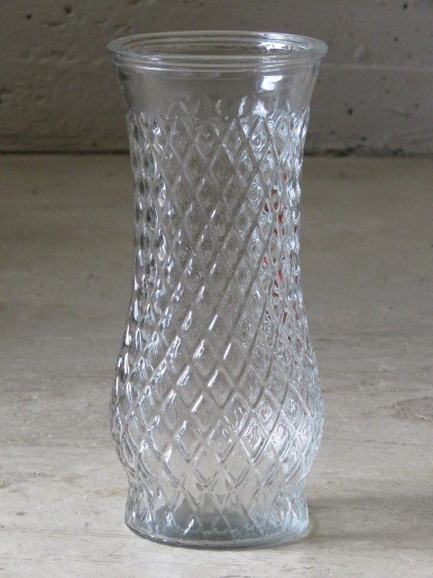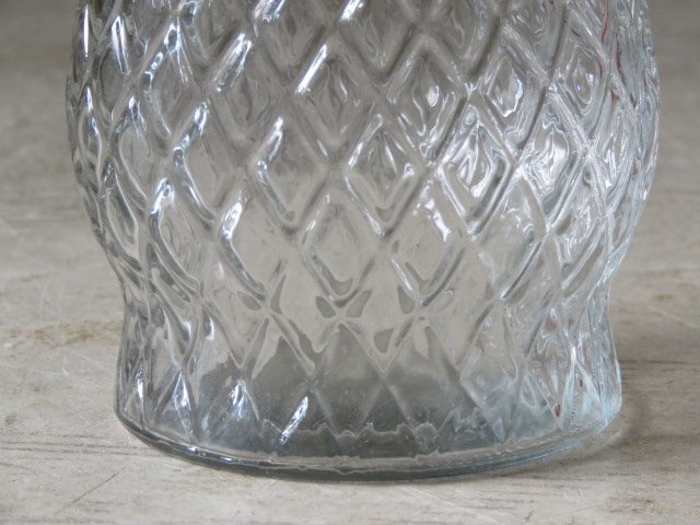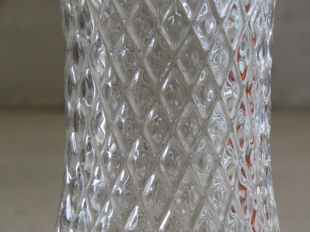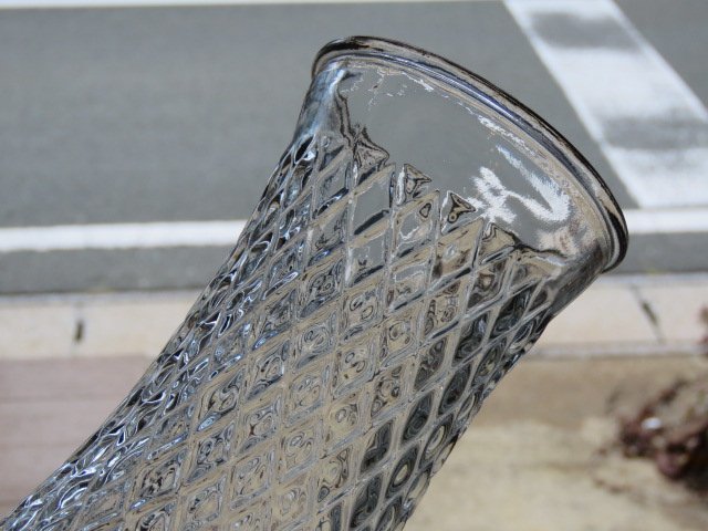 ダイヤ柄のレトロなガラス製花瓶です。