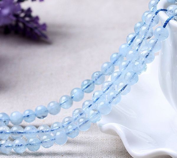 [EasternStar] 海外発送 5A 冰種 アクアマリン 藍柱石 藍玉 Aquamarine 玉径12mm 手作り 1連売り 長さ約40cm
