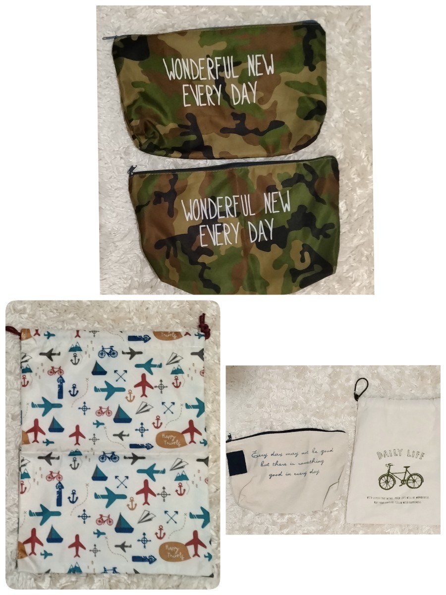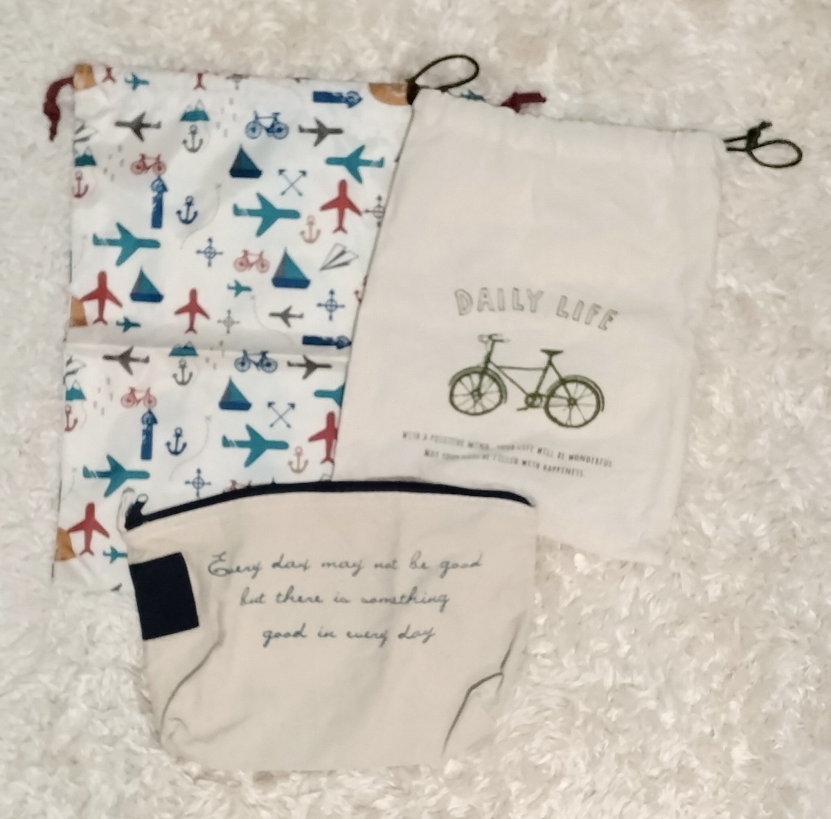 ナイロンの巾着(シューズケースにも使えます)布ポーチ、布巾着の5枚セットです。