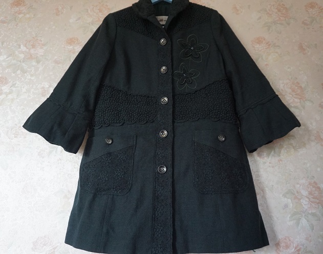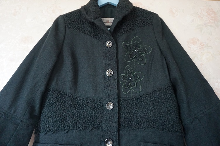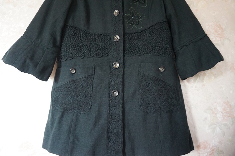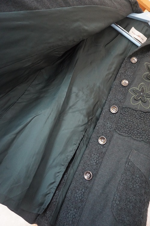 ★trois onze cinq トロワオンサンク 花 刺繍 デザイン コート★グリーン