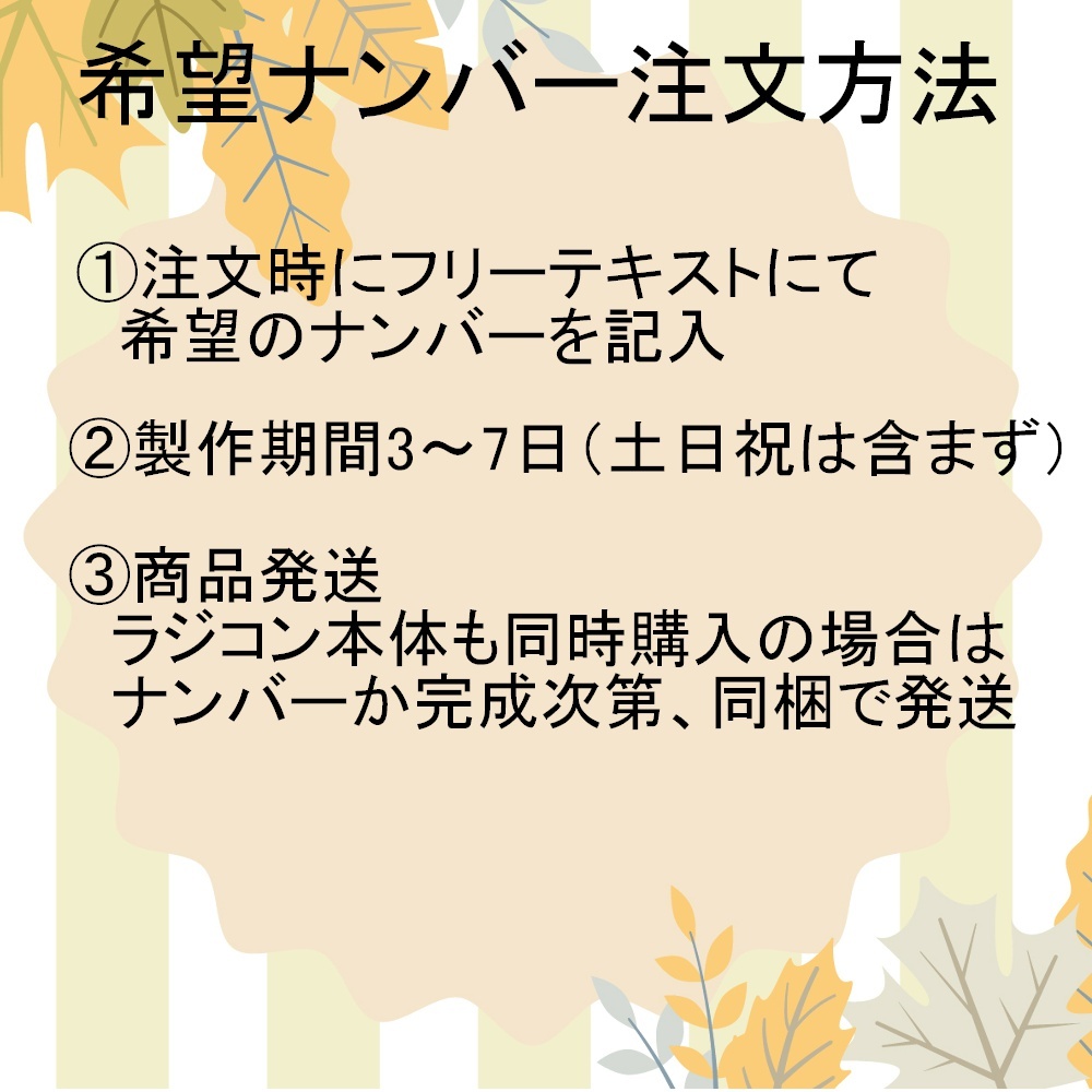 ラジコン本体と希望ナンバーオプションを同時ご購入の場合は、ナンバーが完成してからの発送となります。
