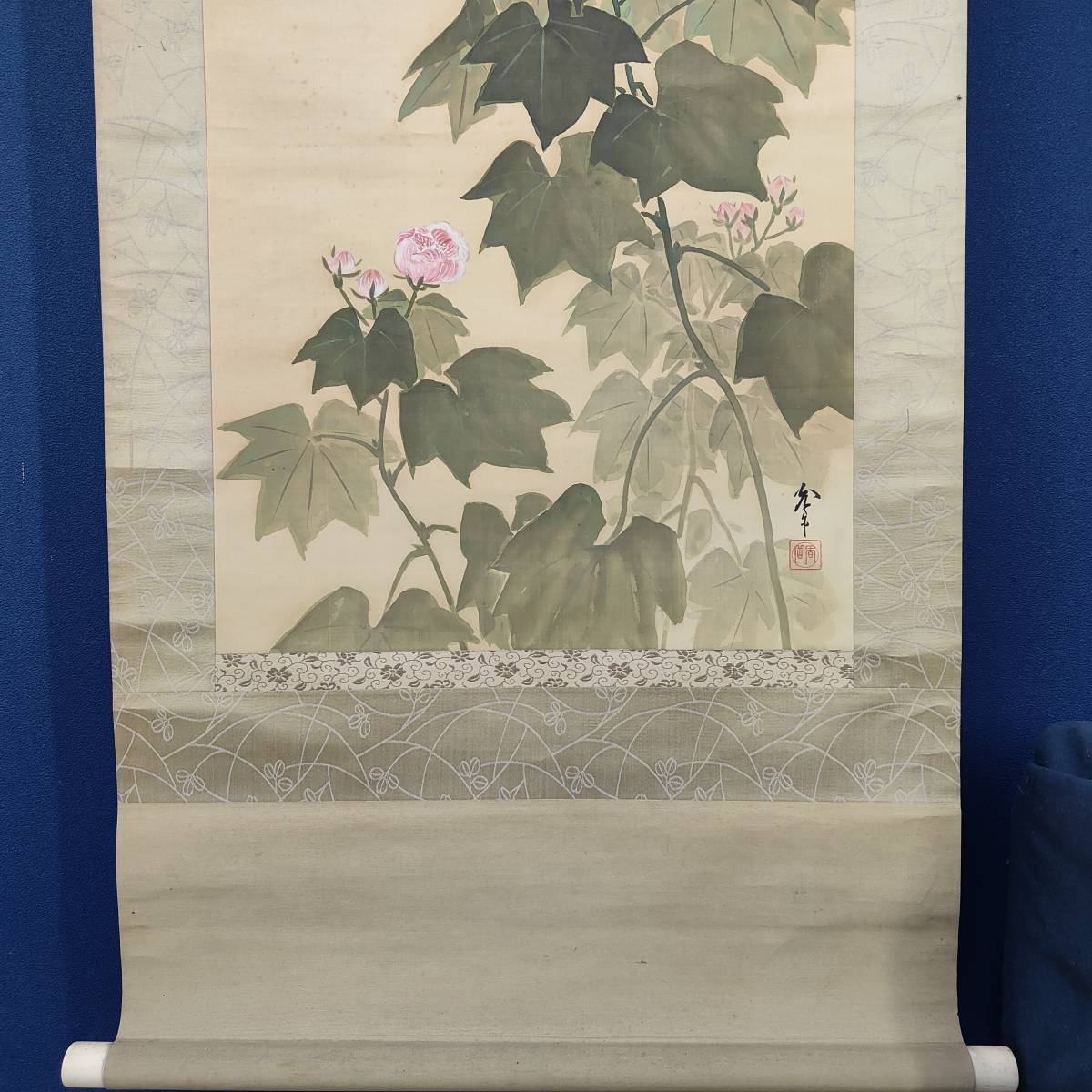 本紙・表装共に薄汚れ・シミ・巻シワ・多少のヤケがあります。